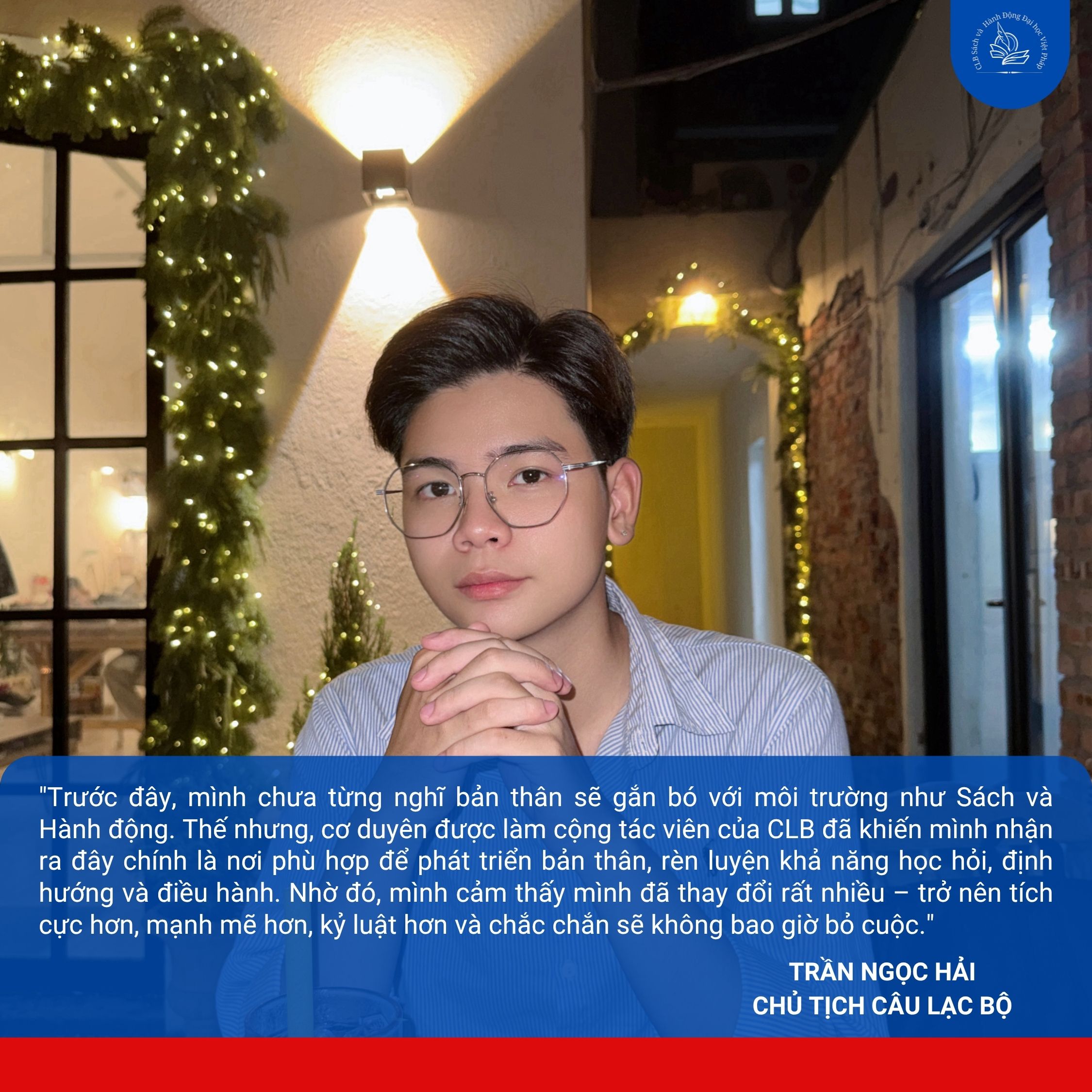 Bên cạnh đó, sự ủng hộ từ Nhà trường và các anh chị cựu thành viên cũng là nguồn động viên to lớn để CLB không ngừng phát triển. Điều quan trọng là mọi người đều nỗ lực vì một mục tiêu chung lan tỏa văn hóa đọc và tinh thần hành động. Nhờ đó, khi cùng làm việc, không khí luôn sôi nổi, tích cực, và nhiều ý tưởng sáng tạo đã được hiện thực hóa hiệu quả.