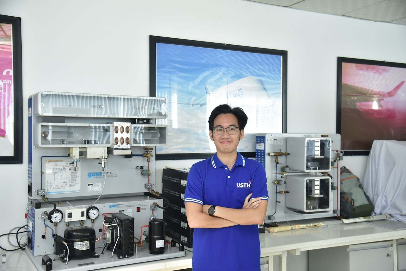 Chính định hướng ấy đã dẫn Thiện đến với ngành Kỹ thuật Hàng không tại USTH. “Mình nhận thấy USTH có nhiều điểm lợi thế như là dự án hợp tác giữa Việt Nam và Pháp, áp dụng hệ thống tín chỉ ECTS châu Âu, đảm bảo tính liên thông và tương thích với các trường đại học ở châu Âu”, Thiện cho biết. Bên cạnh đó, chương trình đào tạo toàn diện, kết hợp hài hòa giữa các môn khoa học – kỹ thuật cơ bản như toán, vật lý, cơ học… với các học phần về vận hành hàng không, luật hàng không và quy trình an toàn, giúp sinh viên vừa nắm chắc lý thuyết vừa sẵn sàng ứng dụng vào thực tiễn.