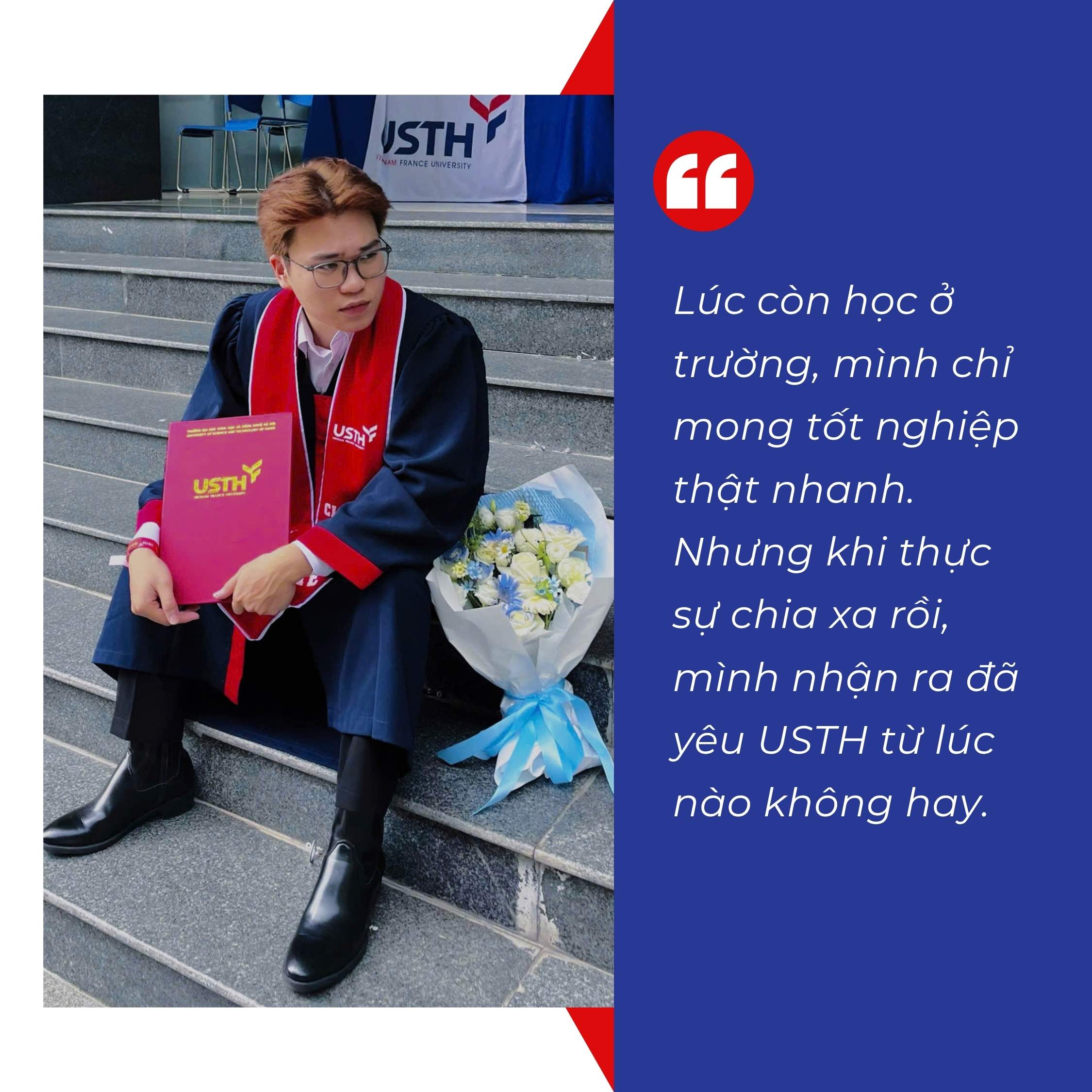 “Lúc còn học ở trường, mình chỉ mong tốt nghiệp thật nhanh,” Đức Anh cho biết. “Nhưng khi thực sự chia xa rồi, mình nhận ra đã yêu USTH từ lúc nào không hay.”