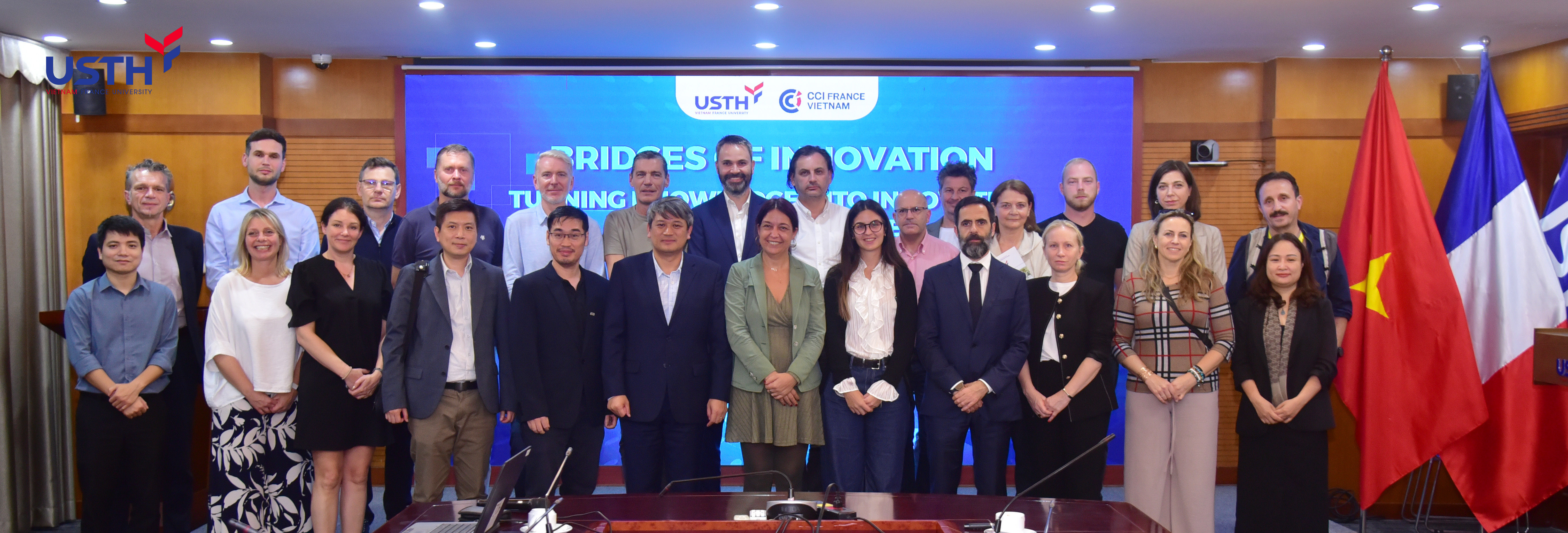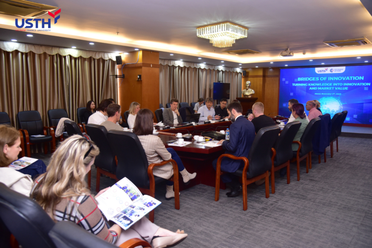 The working session at USTH was held under the theme “Bridges of Innovation: USTH – CCIFV Collaboration Day, Turning Knowledge into Innovation and Market Value”, providing a platform for European enterprises to explore USTH’s academic programs and innovation ecosystem, identify potential areas for cooperation in research, entrepreneurship, and digital transformation, and exchange best practices in innovation, research, and university–industry collaboration.