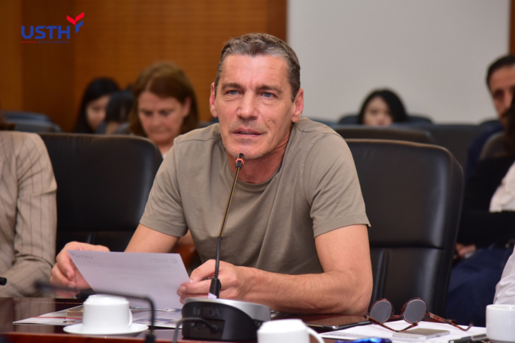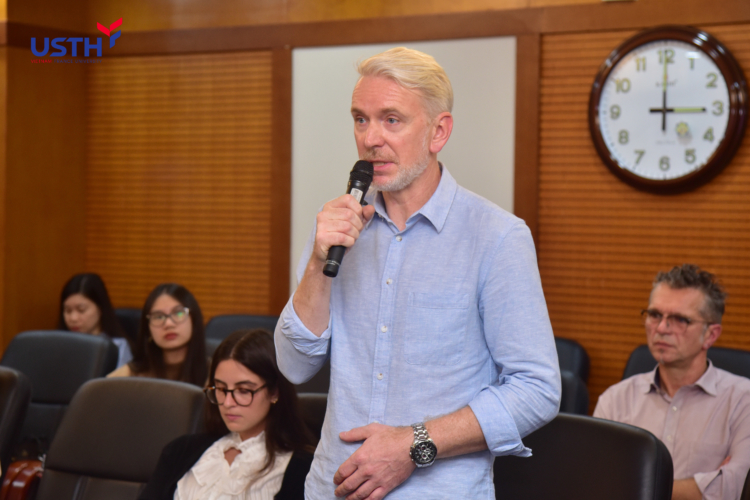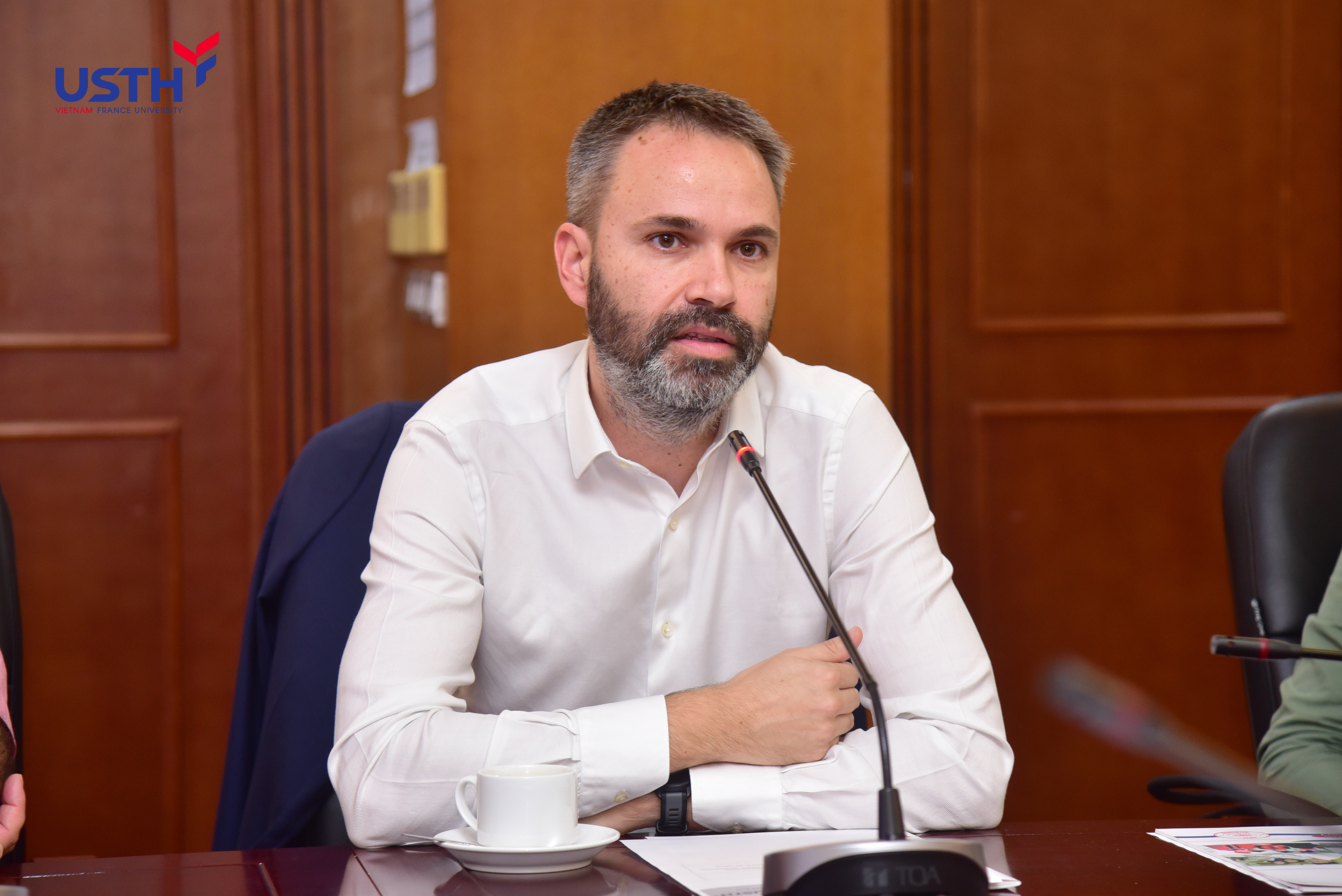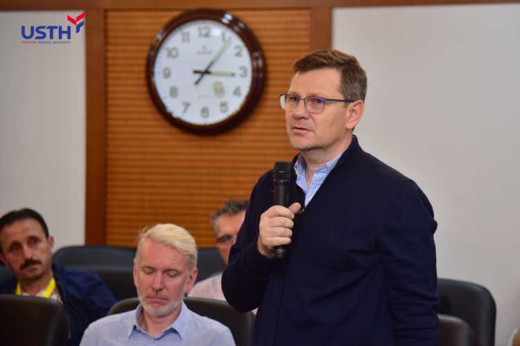 During the session, Assoc. Prof. Tran Dinh Phong, Vice Rector of USTH, presented an overview of the strengths in education, research, and international collaboration. He emphasized that USTH was established under the Intergovernmental Agreement between Vietnam and France and is among the three exemplary universities identified by the Vietnamese Government to develop as research-oriented higher education institutions with a high level of internationalization, focusing on science, engineering, and technology fields with strong potential to contribute to socio-economic development.