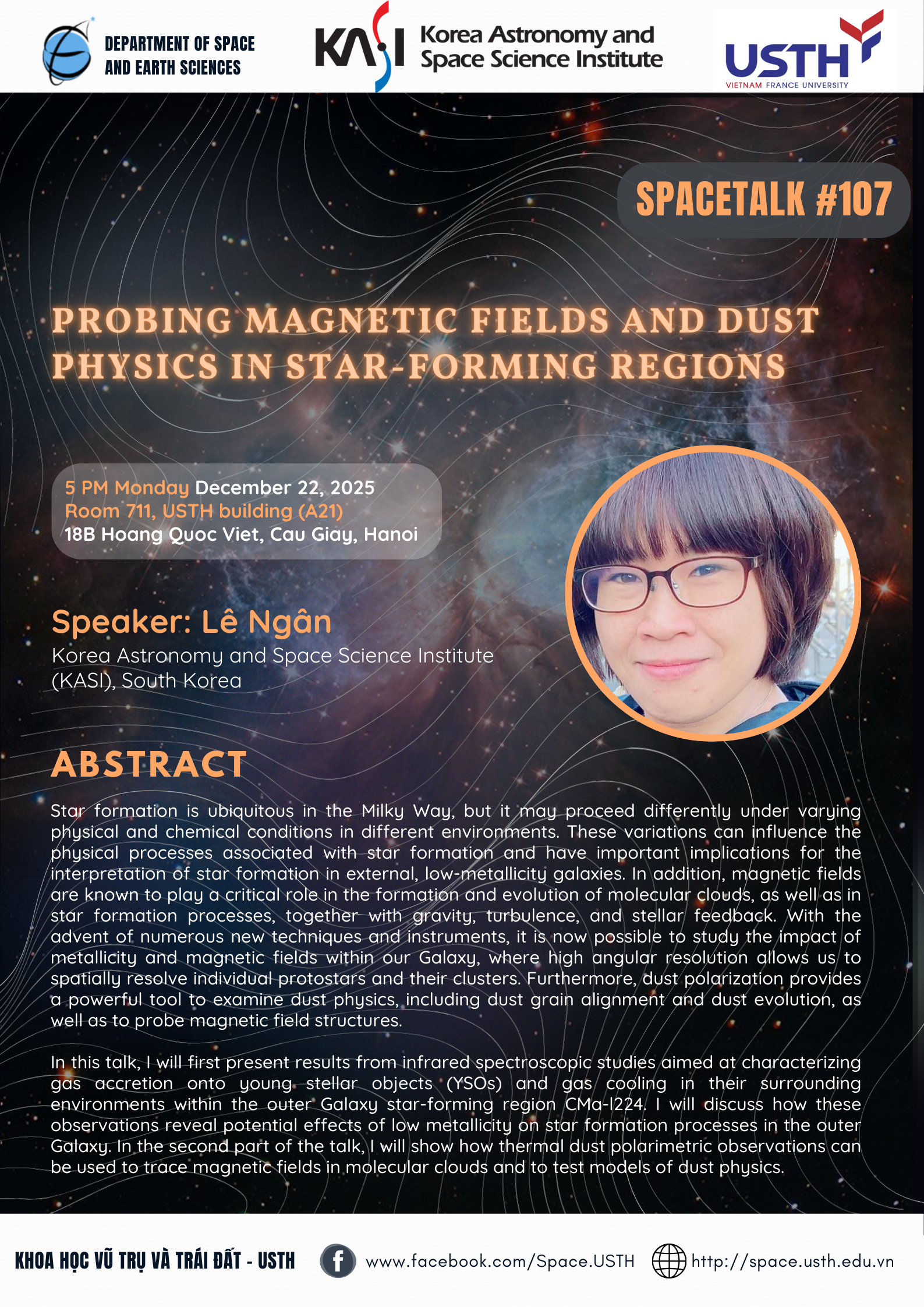 The post SpaceTalk NO. 107: Probing Magnetic Fields and Dust Physics in Star-Forming Regions appeared first on University of Science and Technology of Hanoi.
