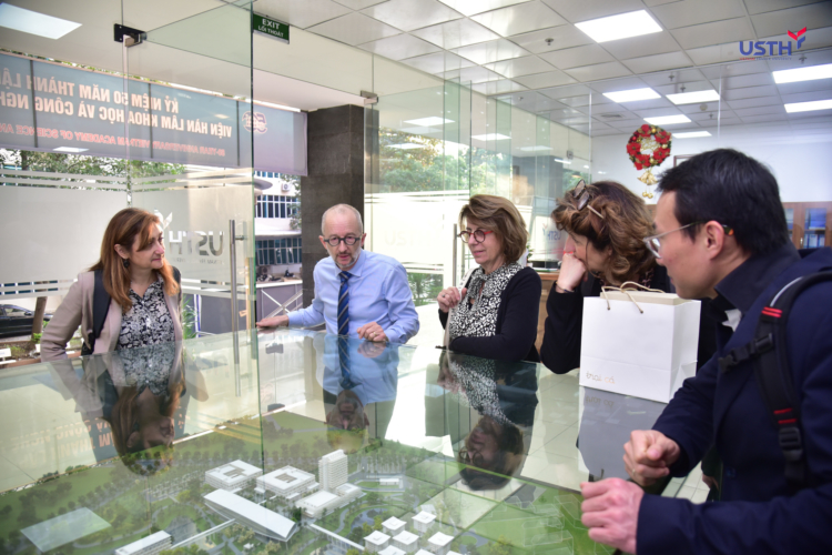 Representing USTH were Prof. Jean-Marc Lavest, Principal Rector; Assoc. Prof. Nguyen Hai Dang, Vice Rector and Director of the Department of Life Sciences; Assoc. Prof. Nguyen Van Quynh, Director of the Department of Advanced Materials Science and Nanotechnology; Assoc. Prof. Mai Huong, Deputy Director of the Department of Chemical and Environmental Technology, and Ms. Do Thi Thuy Trang, Deputy Head of the Department of Research, Innovation and International Affairs.