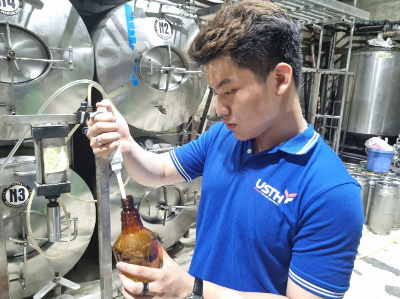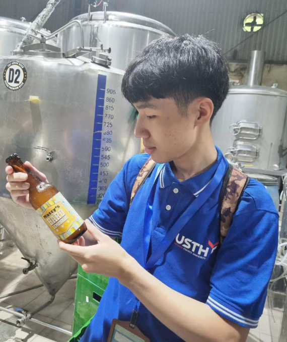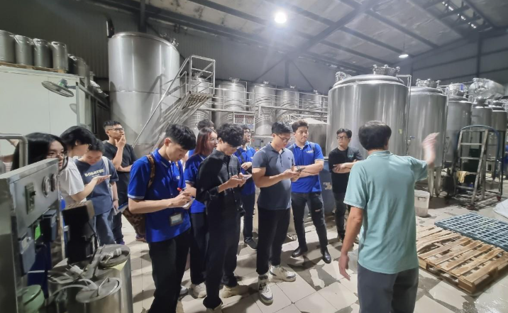 Recently, 12th-cohort students of the Food Science and Technology (FST) programme at the University of Science and Technology of Hanoi (USTH), under the guidance of Dr. Pham Hoang Nam, took part in a professional practical training at FBT Brewery, one of Hanoi’s pioneering craft beer producers. This activity is part of FST – USTH’s work-integrated learning strategy, designed to give students direct exposure to professional food and beverage production environments.