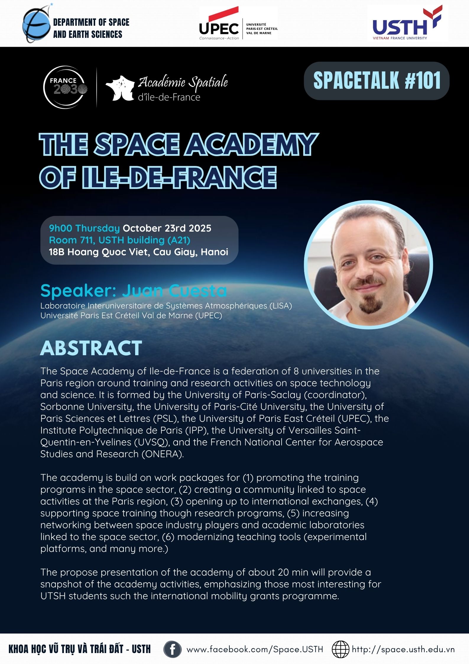 - Presenter: Prof. Juan Cuesta (head of the Space Academy of Ile-de-France at UPEC)