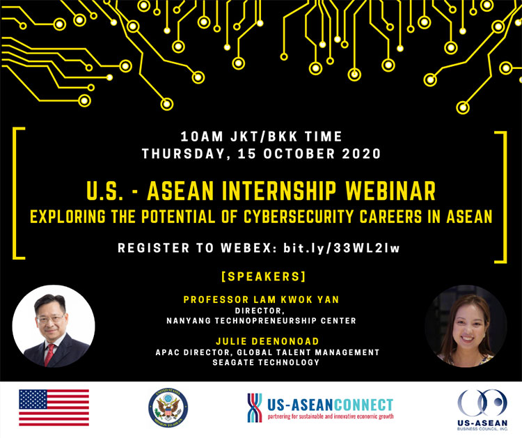 Hội đồng Kinh doanh Hoa Kỳ – ASEAN và Kết nối Hoa Kỳ – ASEAN rất vui mừng được mời bạn tham gia hội thảo trên web về “Khám phá tiềm năng của nghề nghiệp an ninh mạng ở ASEAN” với Giáo sư Lam Kwok Yan, Đại học Công nghệ Nanyang Singapore và Bà Julie Deenonoad, Châu Á Thái Bình Dương Giám đốc Quản lý Nhân tài Toàn cầu, Công nghệ Seagate.