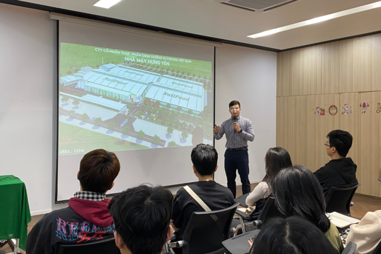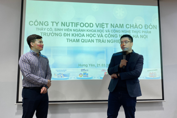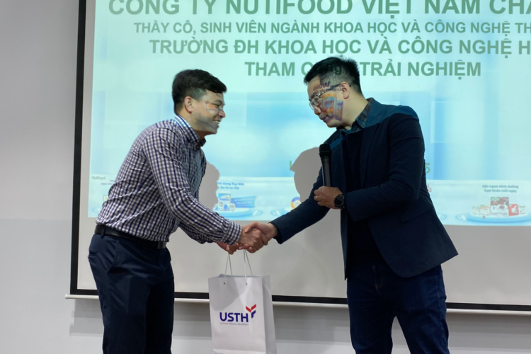 On behalf of Nutifood Hung Yen factory, Mr. Le Van Huy expressed his pleasure in welcoming USTH lecturers and students. He emphasized that the visit provided a valuable opportunity for students to gain exposure to a real working environment, thereby supporting their future career orientation. He also expressed confidence that this visit would serve as a foundation for stronger collaboration between Nutifood and USTH in training and developing high-quality human resources.