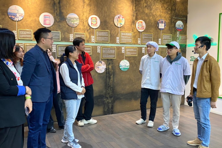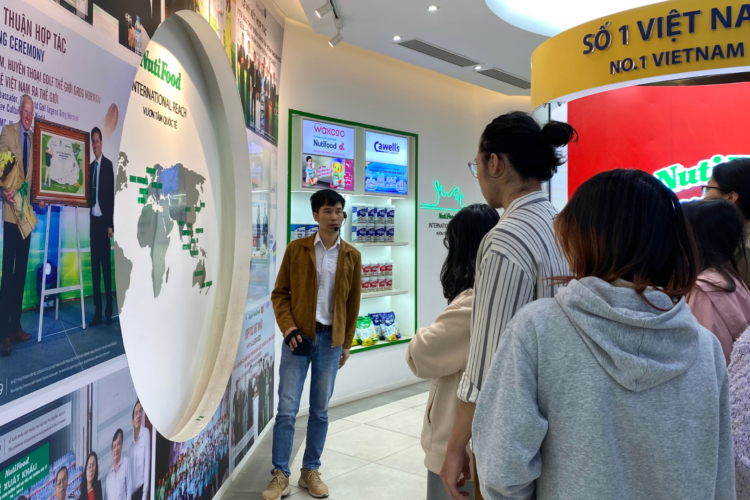 During the visit, students gained insights into the company’s history, operational processes, and strict quality standards across production stages, including raw milk reception, sterilization, packaging, warehousing, and product distribution. In addition, students had the opportunity to engage in a Q&A session with company representatives, clarify questions related to their field, and tour the production facilities at Nutifood. At the end of the visit, the group also experienced a variety of the company’s products, including jelly and packaged fresh milk.