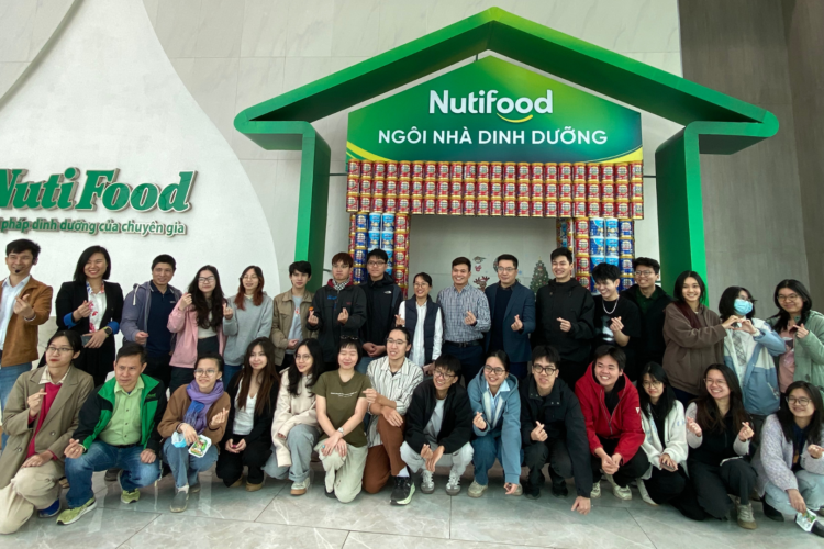 On March 21, 2025, lecturers and students from the Food Science and Technology (FST) program at the University of Science and Technology of Hanoi (USTH) participated in a field trip to the Nutifood dairy factory, one of the leading companies in the nutrition and food industry in Vietnam, located in Hung Yen Province. This activity aimed to help students connect theoretical knowledge with real-world production practices, while also providing opportunities for networking and engagement with industry partners.