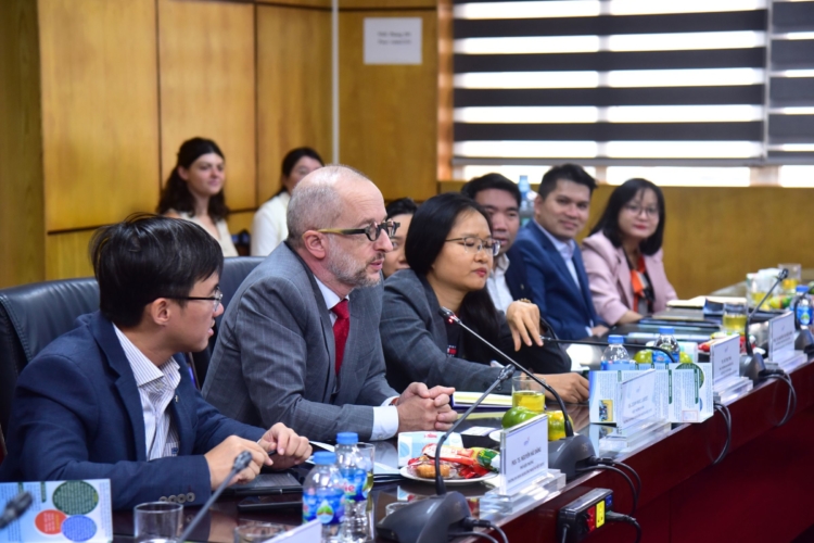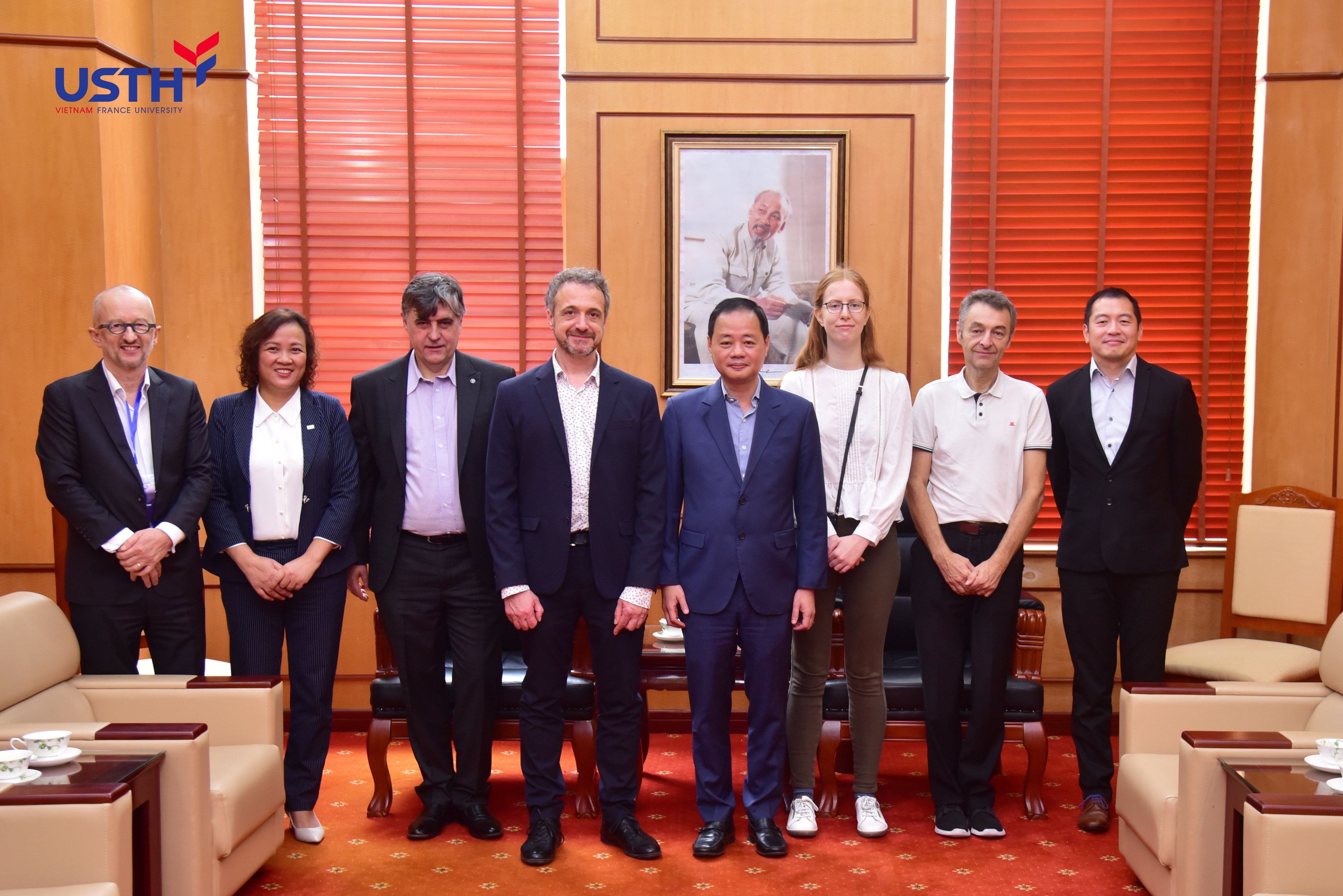 Buổi lễ có sự hiện diện của GS.TS. Jean-Marc Lavest – Hiệu trưởng chính; GS.TS. Đinh Thị Mai Thanh – Hiệu trưởng; PGS.TS. Nguyễn Hải Đăng – Phó Hiệu trưởng, cùng lãnh đạo các khoa, giảng viên, cán bộ và nghiên cứu viên của Trường.