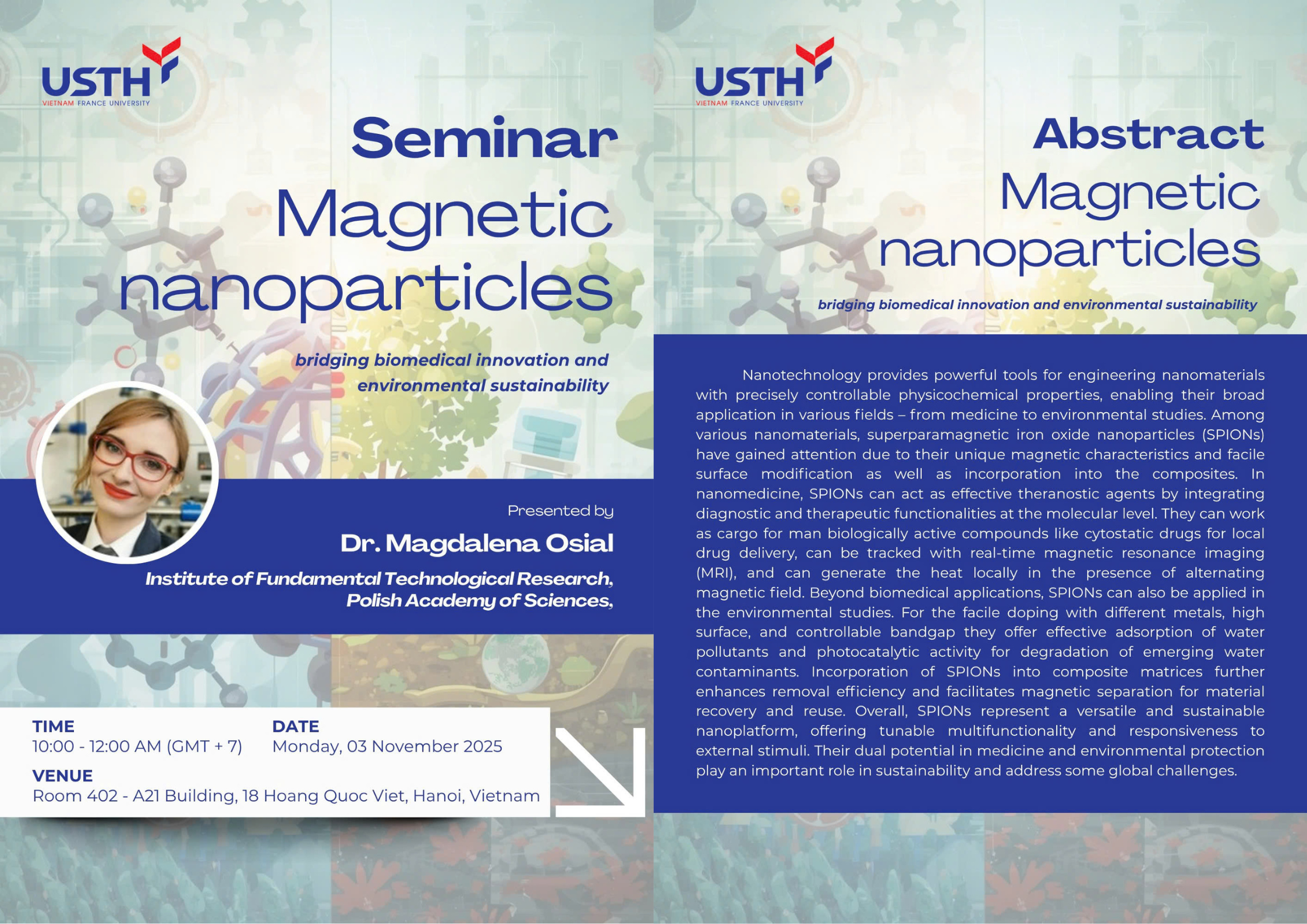 Ngày 12/12/2025, Khoa Công nghệ Hóa học và Môi trường, Trường Đại học Khoa học và Công nghệ Hà Nội (USTH), vinh dự nhận Bằng khen của Bộ Giáo dục và Đào tạo vì những đóng góp xuất sắc trong công tác tập huấn, giảng dạy, bồi dưỡng và dẫn đoàn học sinh tham dự các kỳ thi Olympic quốc tế và các cuộc thi khoa học kỹ thuật quốc tế năm 2025.
