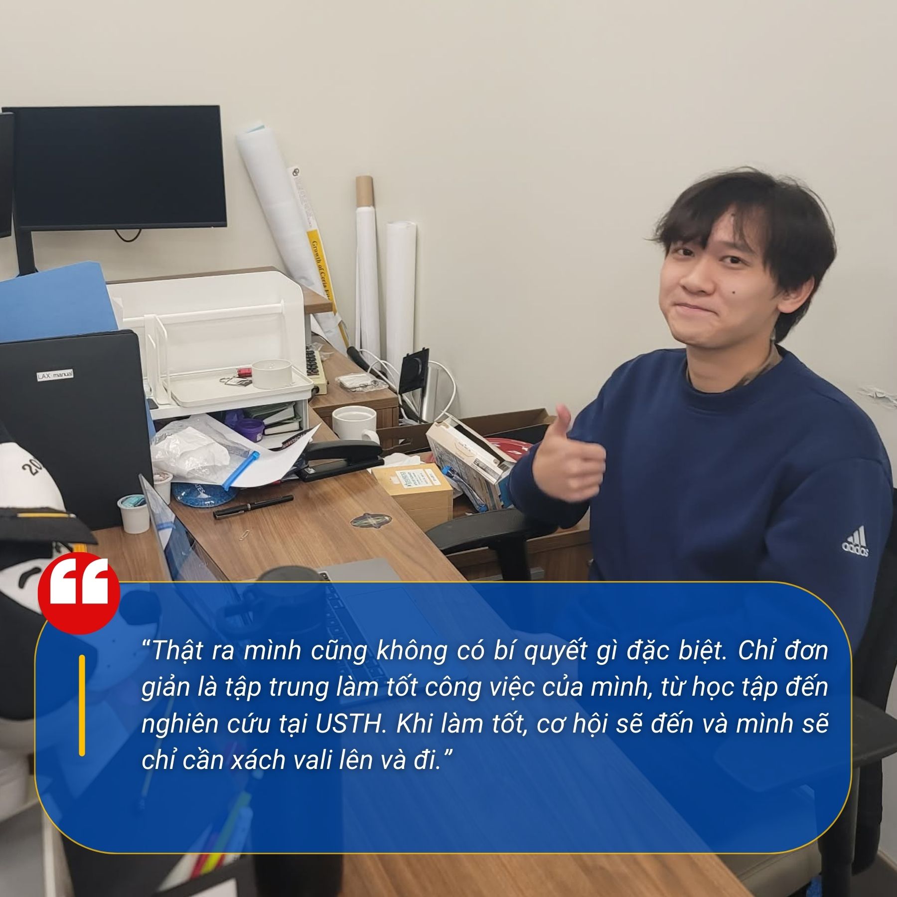 Từ USTH đến xứ sở Cờ hoa: Chinh phục cơ hội đến với trường đại học công lập danh tiếng hàng đầu nước Mỹ https://usth.edu.vn/tu-usth-den-xu-so-co-hoa-chinh-phuc-co-hoi-den-voi-truong-dai-hoc-cong-lap-danh-tieng-hang-dau-nuoc-my-28930/ https://usth.edu.vn/tu-usth-den-xu-so-co-hoa-chinh-phuc-co-hoi-den-voi-truong-dai-hoc-cong-lap-danh-tieng-hang-dau-nuoc-my-28930/#respond Mon, 29 Dec 2025 08:25:29 +0000 https://usth.edu.vn/?p=28930 Gắn bó trọn vẹn 5 năm học tập tại USTH, tình yêu của Nguyễn Phú Trọng dành cho ngôi trường nhỏ nhắn nằm trong khuôn viên Viện Hàn lâm Khoa học và Công nghệ Việt Nam được bồi đắp từ một môi trường học thuật gần gũi, nơi thầy cô không chỉ là người hướng […]