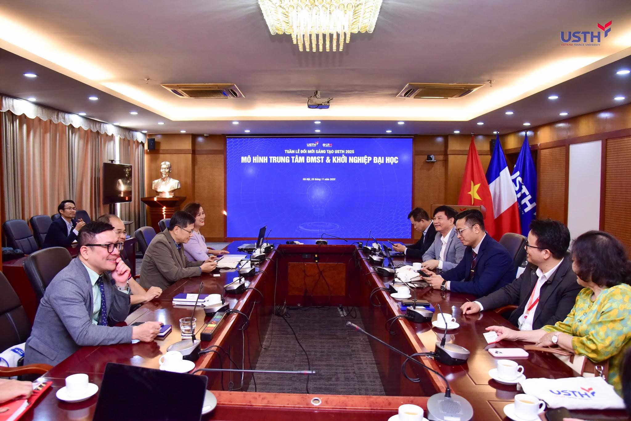 Kinh nghiệm từ CEA: Gợi mở hướng phát triển hệ sinh thái nghiên cứu – đổi mới sáng tạo tại USTH https://usth.edu.vn/kinh-nghiem-tu-cea-goi-mo-huong-phat-trien-he-sinh-thai-nghien-cuu-doi-moi-sang-tao-tai-usth-28920/ https://usth.edu.vn/kinh-nghiem-tu-cea-goi-mo-huong-phat-trien-he-sinh-thai-nghien-cuu-doi-moi-sang-tao-tai-usth-28920/#respond Sat, 27 Dec 2025 12:03:15 +0000 https://usth.edu.vn/?p=28920 Ngày 25/12/2025, Trường Đại học Khoa học và Công nghệ Hà Nội (USTH) đã tổ chức thành công seminar với chủ đề “Nghiên cứu, đào tạo và đổi mới sáng tạo – Kinh nghiệm từ CEA”, nhằm thúc đẩy hoạt động nghiên cứu khoa học, đổi mới sáng tạo, đồng thời tăng cường hiểu biết […]