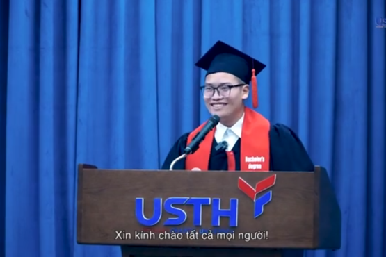 Tại Lễ tốt nghiệp 2024 của Trường Đại học Khoa học và Công nghệ Hà Nội (USTH), bạn Nguyễn Đức Hùng – thủ khoa tốt nghiệp ngành Công nghệ kỹ thuật cơ