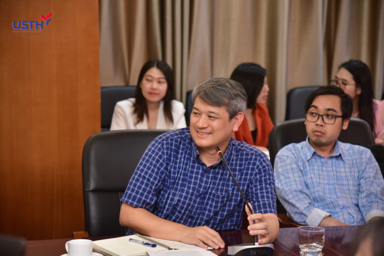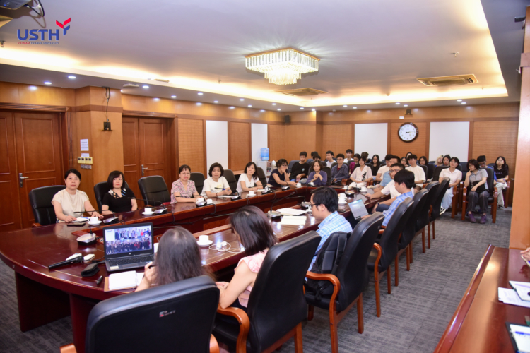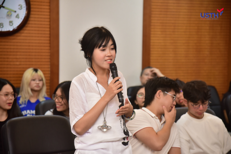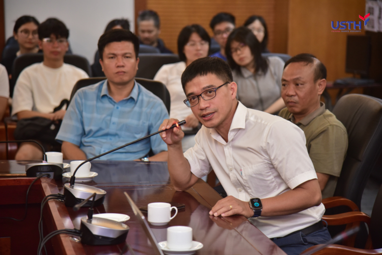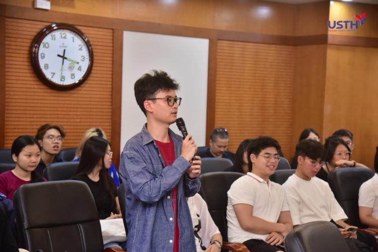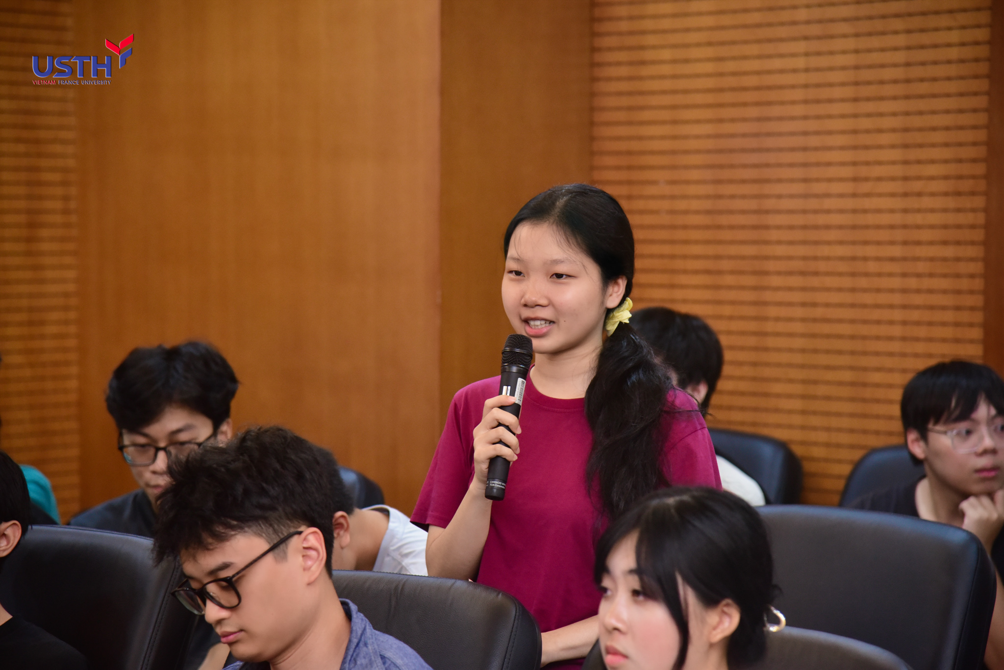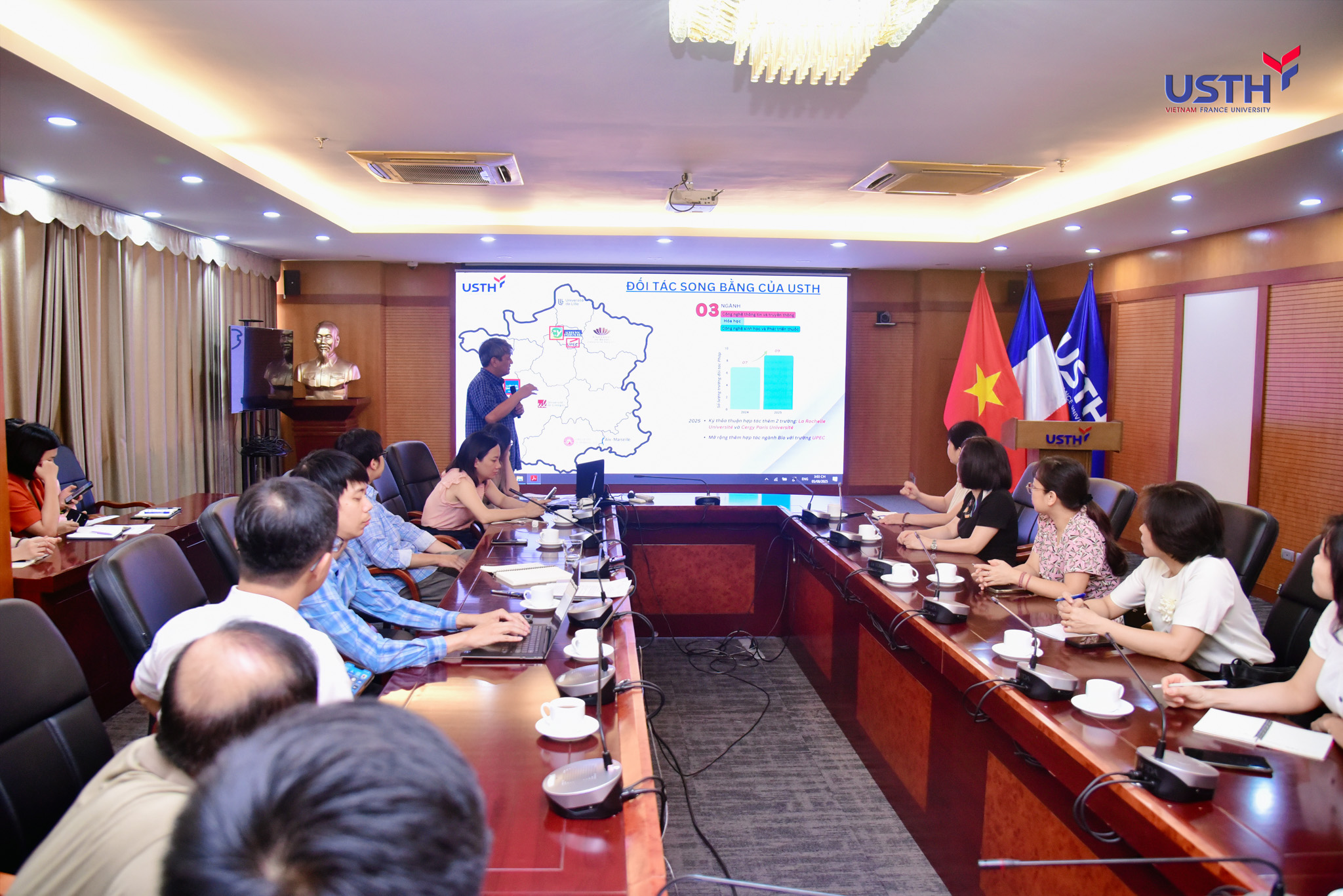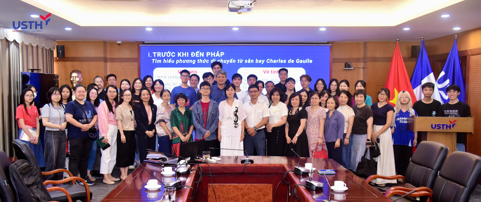 Ngày 5/8/2025, Trường Đại học Khoa học và Công nghệ Hà Nội (USTH) đã tổ chức buổi gặp gỡ và trao đổi giữa Ban Giám hiệu và sinh viên của 3 chương trình đào tạo tạo song bằng: Công nghệ Sinh học – Phát triển thuốc, Công nghệ thông tin – Truyền thông và Hóa học trước khi các em lên đường sang Pháp học tập năm cuối của chương trình cử nhân. Đây là dịp để Nhà trường chia sẻ và cung cấp những thông tin thiết thực hỗ trợ sinh viên trong việc chuẩn bị hành trang học tập và cuộc sống tại Pháp, đồng thời giải đáp các thắc mắc liên quan đến quá trình học tập, sinh hoạt và thích nghi với môi trường quốc tế.