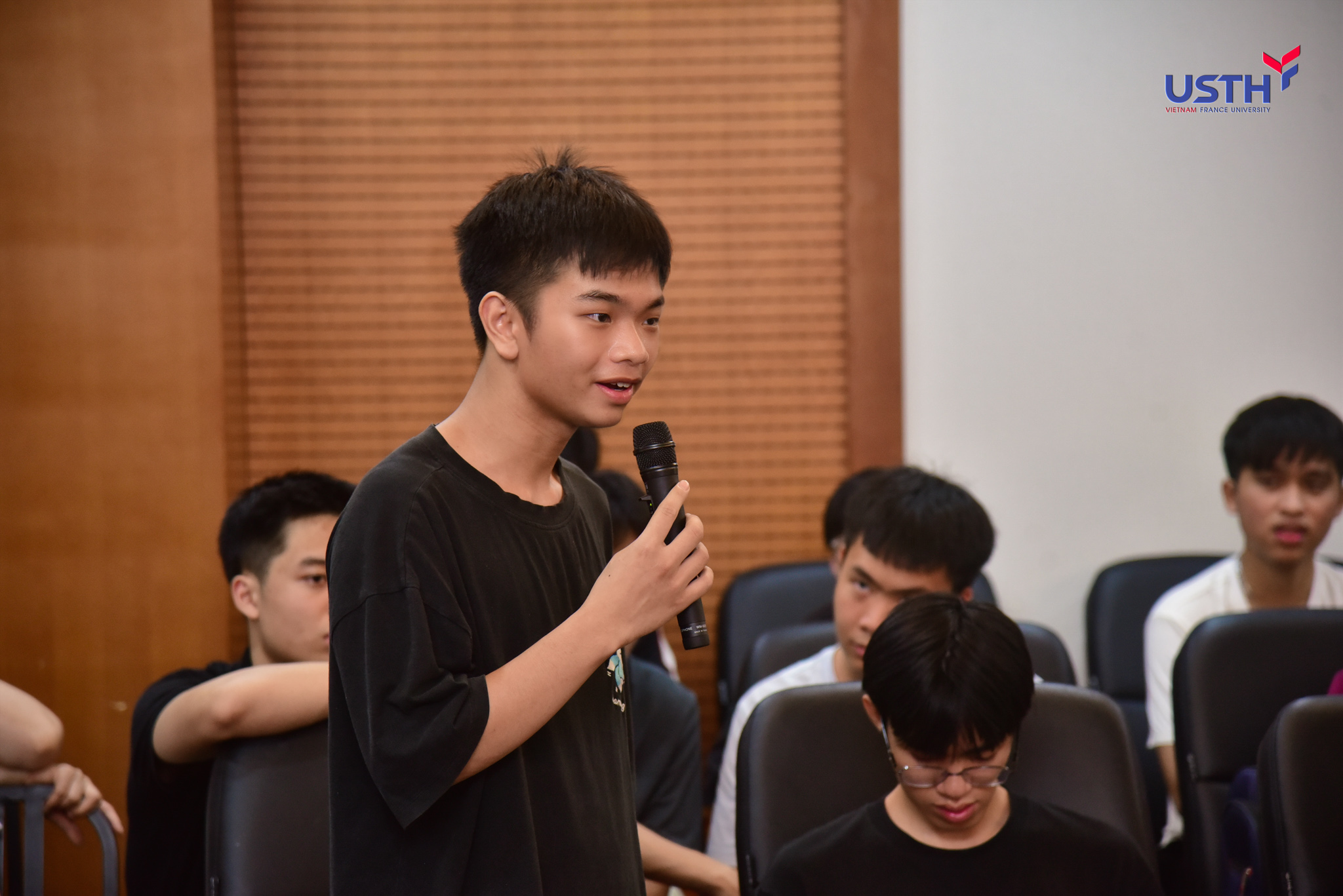 Sau phần phổ biến những thông tin hữu ích dành cho sinh viên – từ việc chuẩn bị tinh thần, hành trang nhập học, đến các kỹ năng sống cần thiết khi sinh sống và học tập tại Pháp – là phần trao đổi sôi nổi giữa Ban Giám hiệu, đại diện các Khoa, sinh viên và phụ huynh xoay quanh các vấn đề thực tiễn mà các em có thể sẽ gặp trong quá trình du học. Đặc biệt, buổi gặp mặt còn có sự chia sẻ chân thực và đầy cảm hứng từ các cựu sinh viên Gen 13 chương trình song bằng, những người từng trải qua hành trình học tập tại Pháp và đã đạt được nhiều thành tích ấn tượng như: