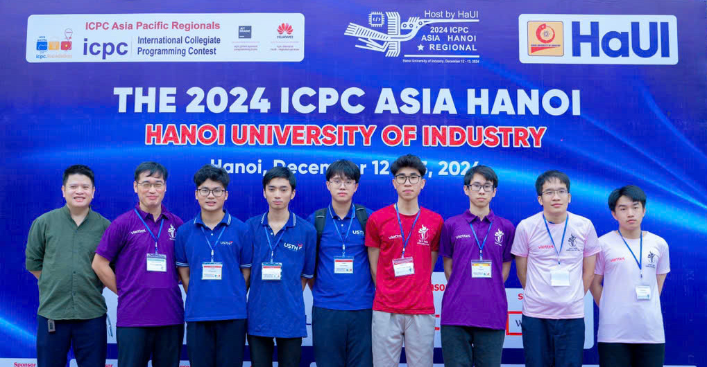 Nguyễn Đức Minh (đứng giữa) trong đội tuyển tham dự ICPC 2024 – vòng khu vực châu Á