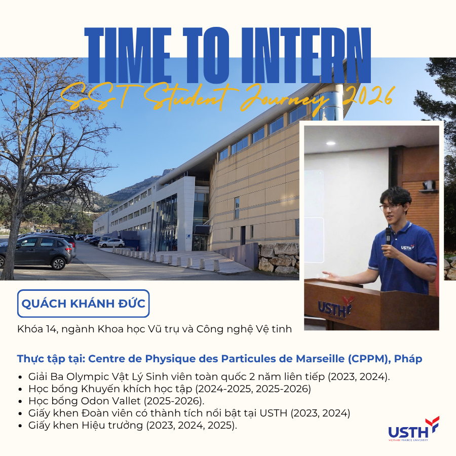 Vượt qua quy trình xét duyệt gắt gao và sự cạnh tranh trực tiếp từ các ứng viên Thạc sĩ quốc tế, Đức đã xuất sắc thuyết phục hội đồng tuyển chọn bằng nền tảng kiến thức vững chắc và tinh thần sẵn sàng dấn thân. Việc giành được tấm vé thực tập “vượt cấp” tại một trong những trung tâm vật lý hạt hàng đầu thế giới không chỉ là thành công cá nhân, mà còn khẳng định chất lượng đào tạo của USTH có thể đáp ứng những tiêu chuẩn nghiên cứu khắt khe nhất tại châu Âu.