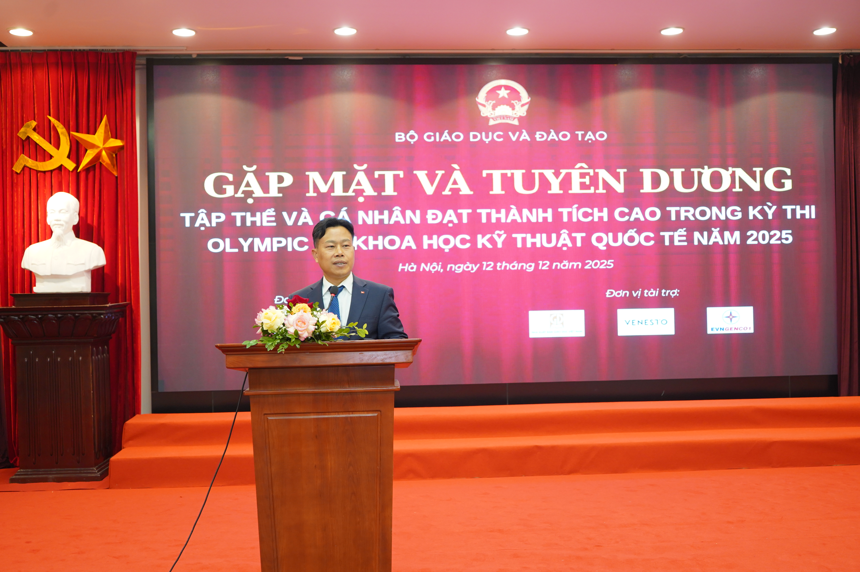 Phát biểu tại buổi “Gặp mặt và Tuyên dương tập thể, cá nhân đạt thành tích cao trong các kỳ thi Olympic và khoa học kỹ thuật quốc tế năm 2025”, Thứ trưởng Bộ GDĐT Lê Quân đánh giá cao kết quả của học sinh Việt Nam trong năm nay, ghi nhận sự phát triển đồng đều ở cả các môn truyền thống như Toán, Lý, Hóa lẫn những lĩnh vực mới như Tin học và các cuộc thi khoa học kỹ thuật. Ông nhấn mạnh rằng việc giao nhiệm vụ nghiên cứu sớm, đưa các nhà khoa học, giảng viên đại học và những người làm thực tiễn vào hướng dẫn học sinh đã tạo nên chuyển biến tích cực, giúp gắn kết chặt chẽ giữa tri thức phổ thông và hoạt động nghiên cứu định hướng nghề nghiệp.