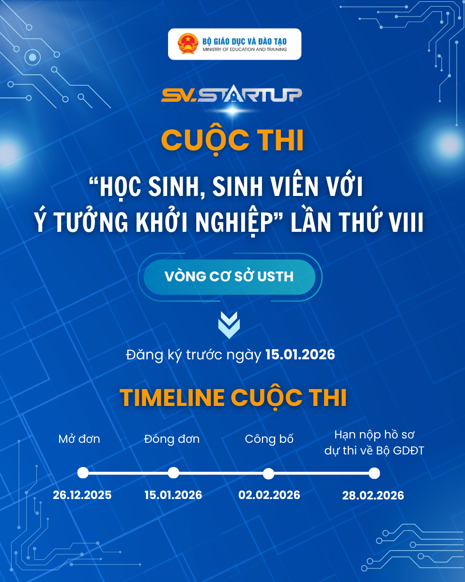 Nhằm thúc đẩy tinh thần khởi nghiệp, đồng thời trang bị kiến thức và kỹ năng khởi nghiệp cho học sinh, sinh viên trong cả nước, Bộ Giáo dục và Đào tạo chính thức phát động Cuộc thi “Học sinh, sinh viên với ý tưởng khởi nghiệp” lần thứ VIII – năm 2026 (SV_STARTUP 2026).
