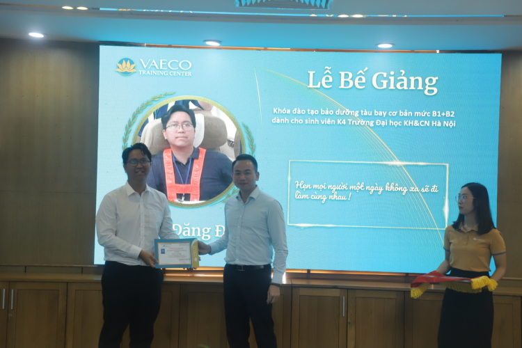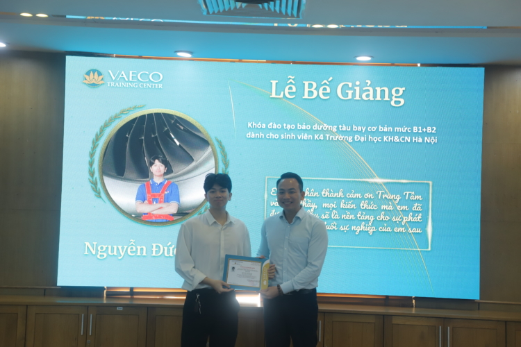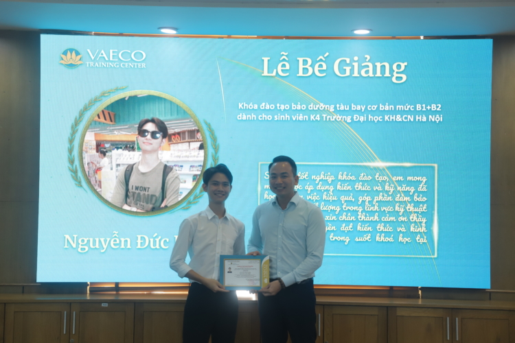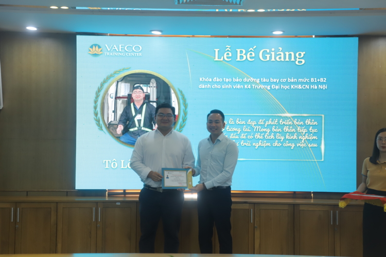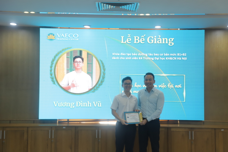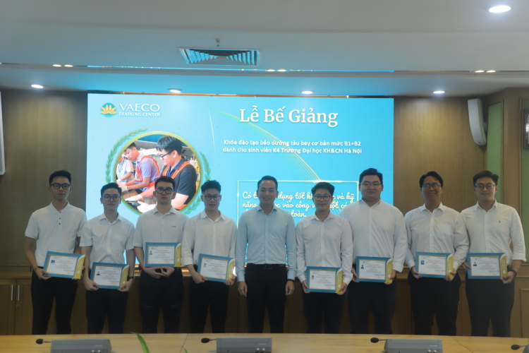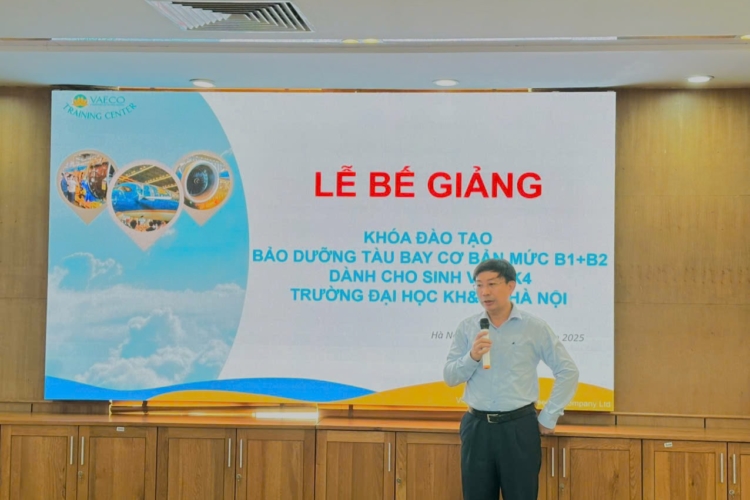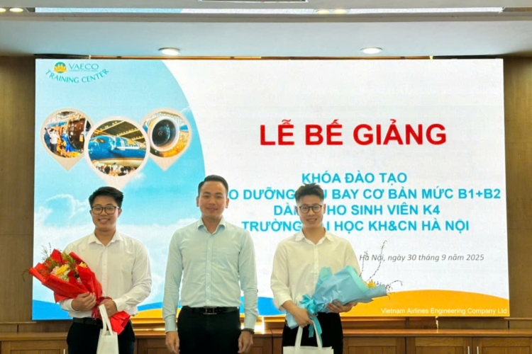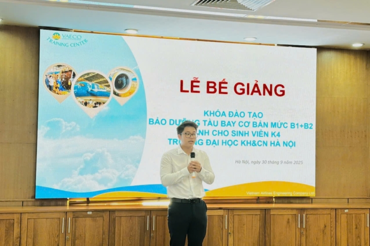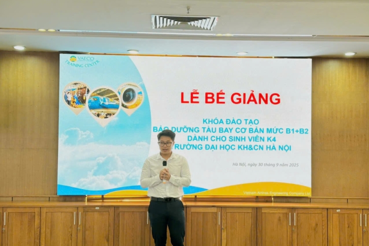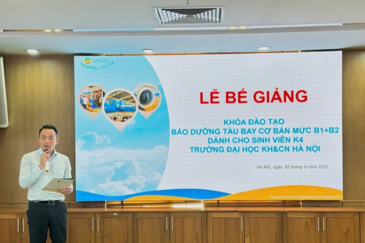 Ngày 30/9/2025, tại Trung tâm đào tạo của Công ty TNHH MTV Kỹ thuật máy bay (VAECO) – đơn vị thành viên của Tổng công ty Hàng không Việt Nam (Vietnam Airlines), đã diễn ra Lễ bế giảng chương trình đào tạo chứng chỉ cơ bản bảo dưỡng máy bay B1+B2 dành cho sinh viên ngành Kỹ thuật Hàng không của USTH.
