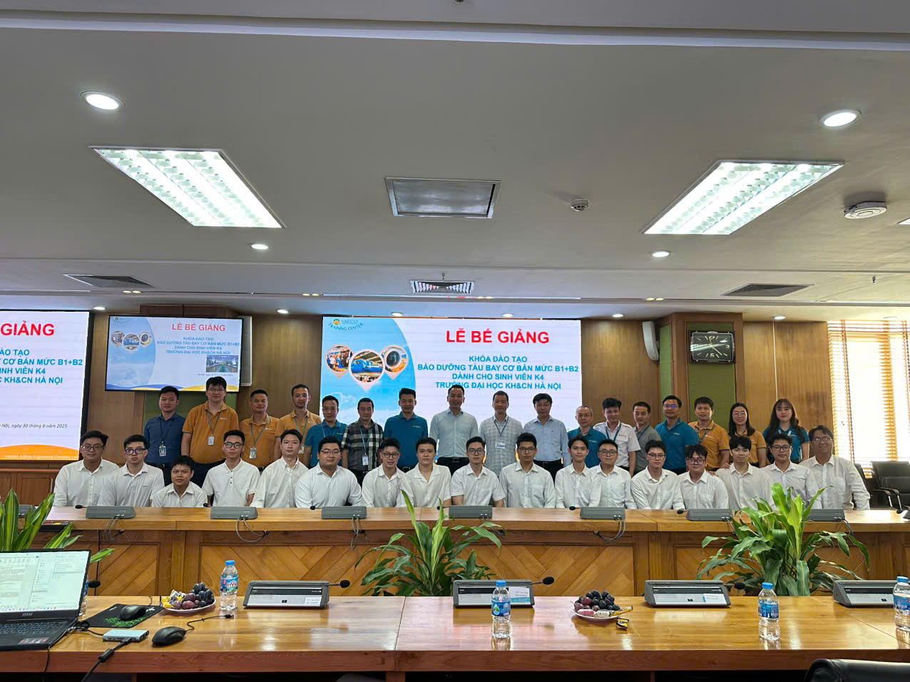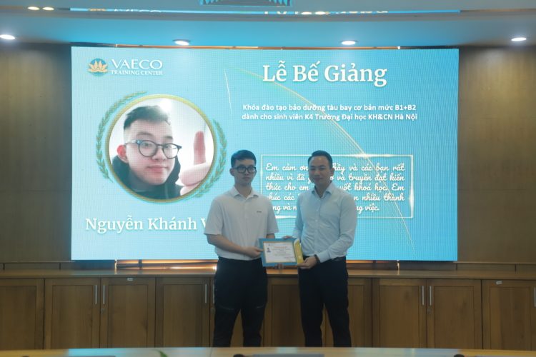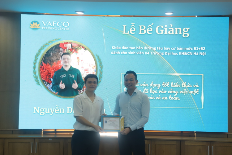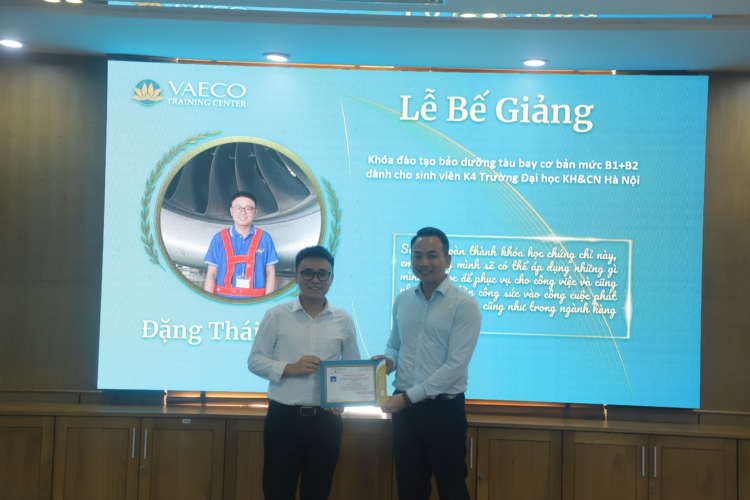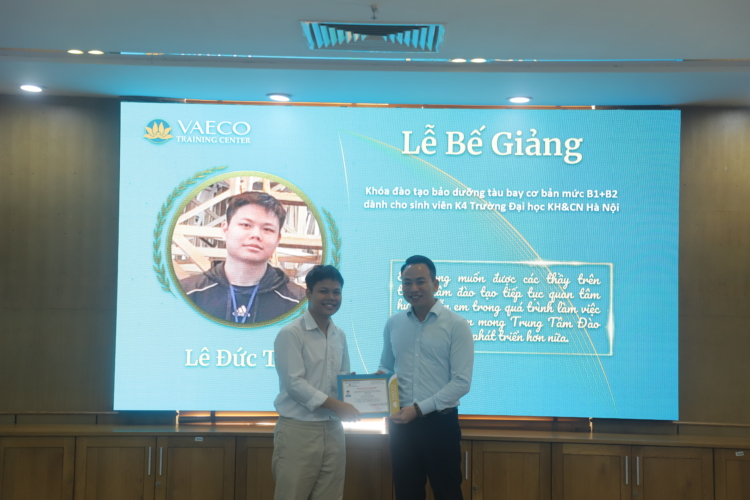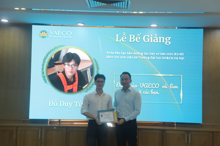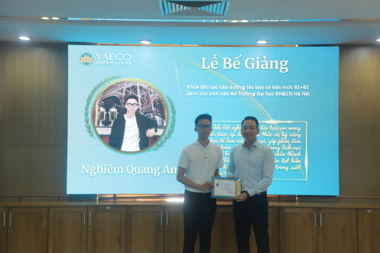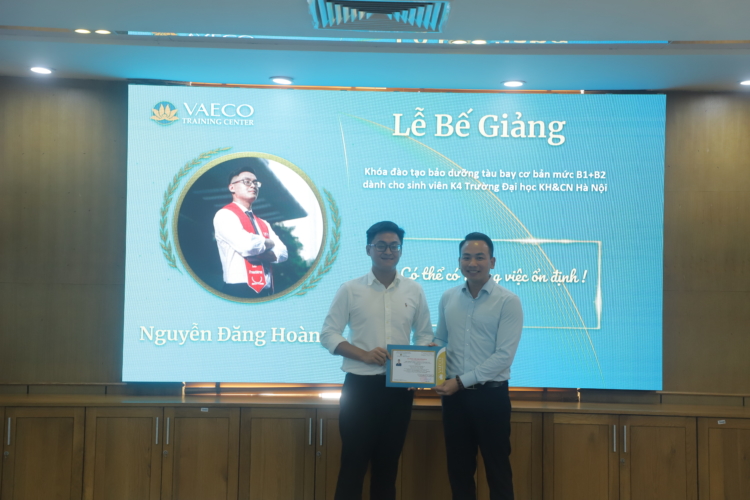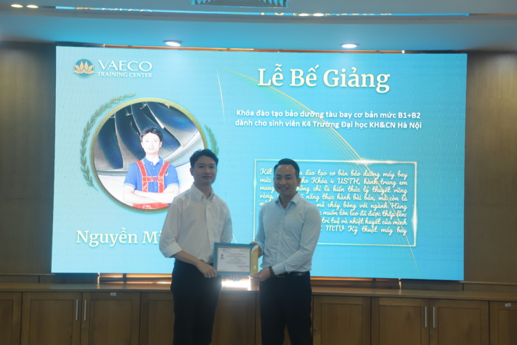 Ngày 30/9/2025, tại Trung tâm đào tạo của Công ty TNHH MTV Kỹ thuật máy bay (VAECO) – đơn vị thành viên của Tổng công ty Hàng không Việt Nam (Vietnam Airlines), đã diễn ra Lễ bế giảng chương trình đào tạo chứng chỉ cơ bản bảo dưỡng máy bay B1+B2 dành cho sinh viên ngành Kỹ thuật Hàng không của USTH.