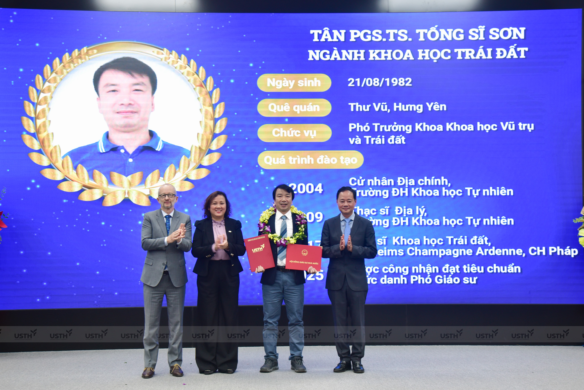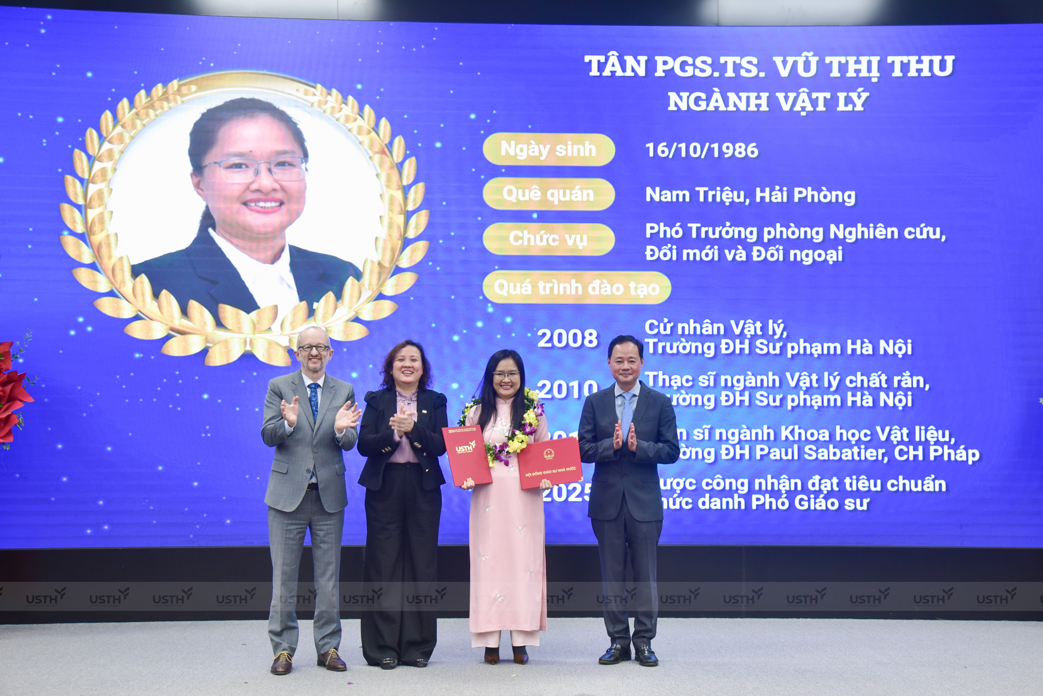 Ngày 05/01/2026, Trường Đại học Khoa học và Công nghệ Hà Nội (USTH) đã long trọng tổ chức Lễ công bố và trao quyết định bổ nhiệm chức danh Phó giáo sư năm 2025.