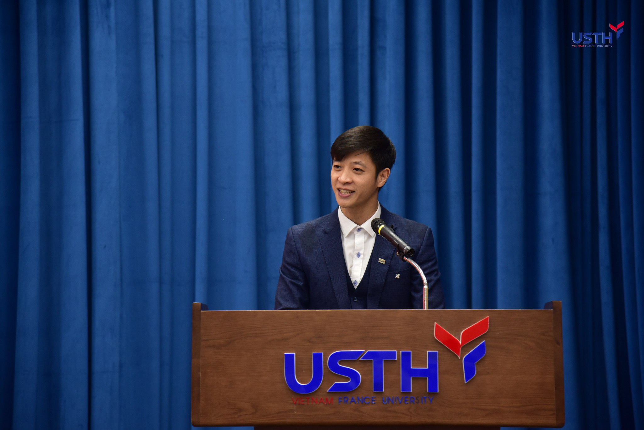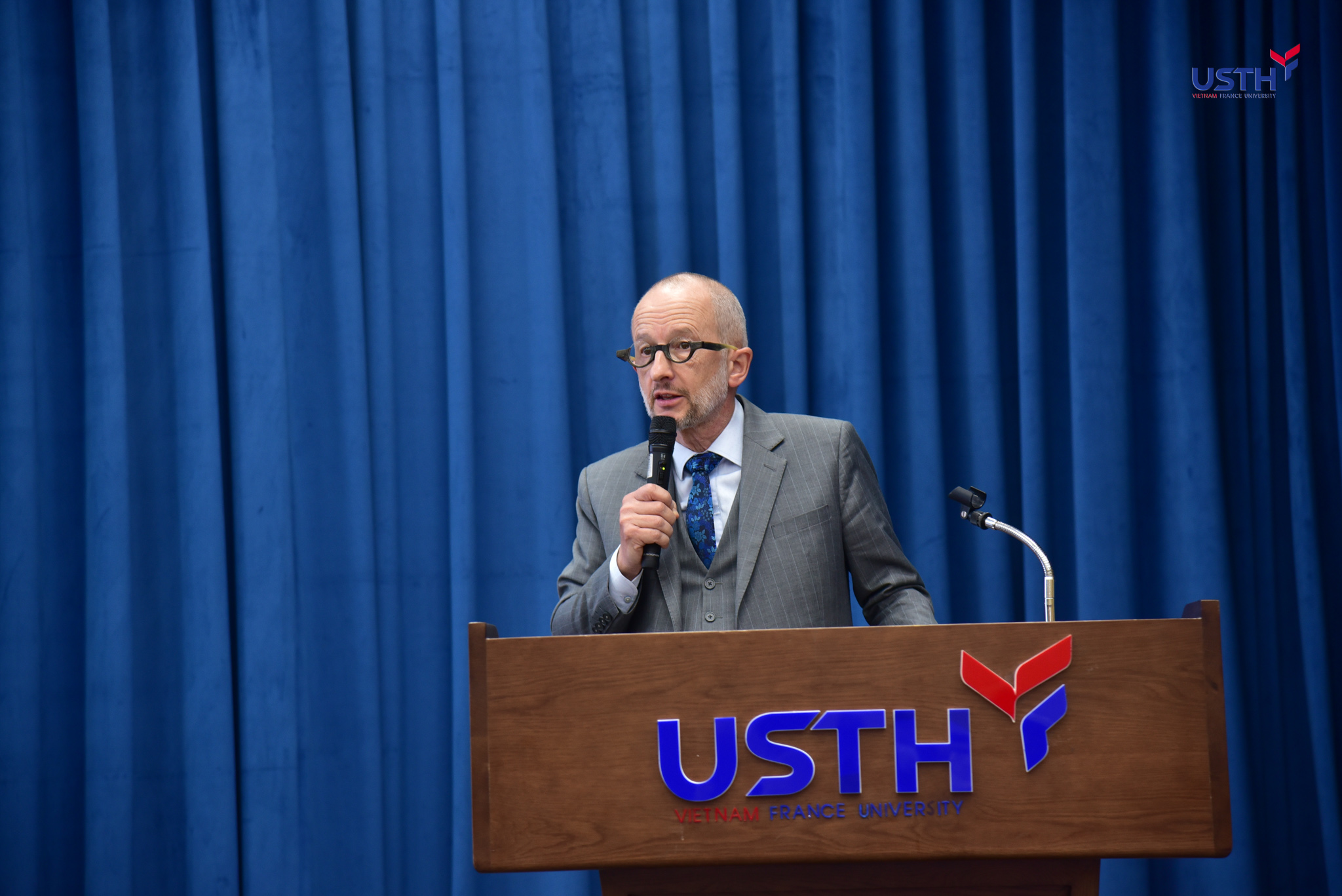 Phát biểu khai mạc buổi Lễ, GS.Jean-Marc Lavest, Hiệu trưởng chính của USTH gửi lời chúc mừng nhiệt liệt tới các tân Phó Giáo sư được bổ nhiệm trong buổi Lễ ngày hôm nay. GS. Jean-Marc Lavest khẳng định những thành tựu USTH đạt được ngày hôm nay là kết tinh từ tầm nhìn chiến lược từ các nhà lãnh đạo Việt Nam và Pháp, cùng với những cống hiến thầm lặng, cam kết và nỗ lực bền bỉ của tập thể cán bộ, giảng viên của Nhà trường.