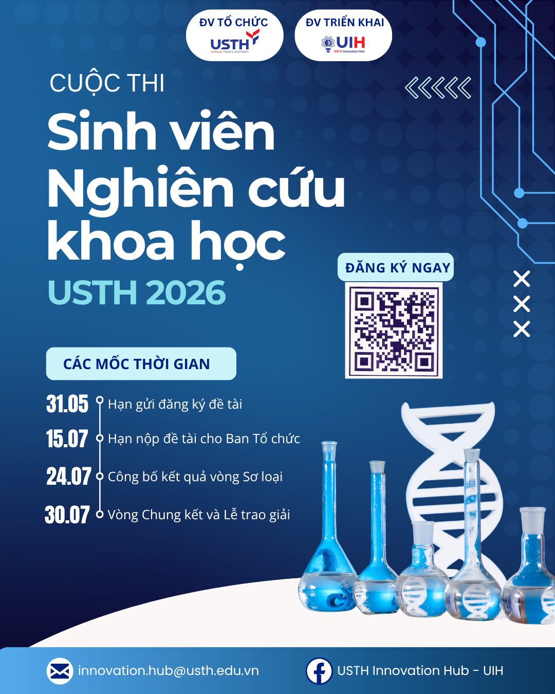 Nhằm thúc đẩy tinh thần học thuật và tạo điều kiện để sinh viên phát huy năng lực nghiên cứu, Trường Đại học Khoa học và Công nghệ Hà Nội (USTH) chính thức phát động cuộc thi “Sinh viên nghiên cứu khoa học USTH 2026”.