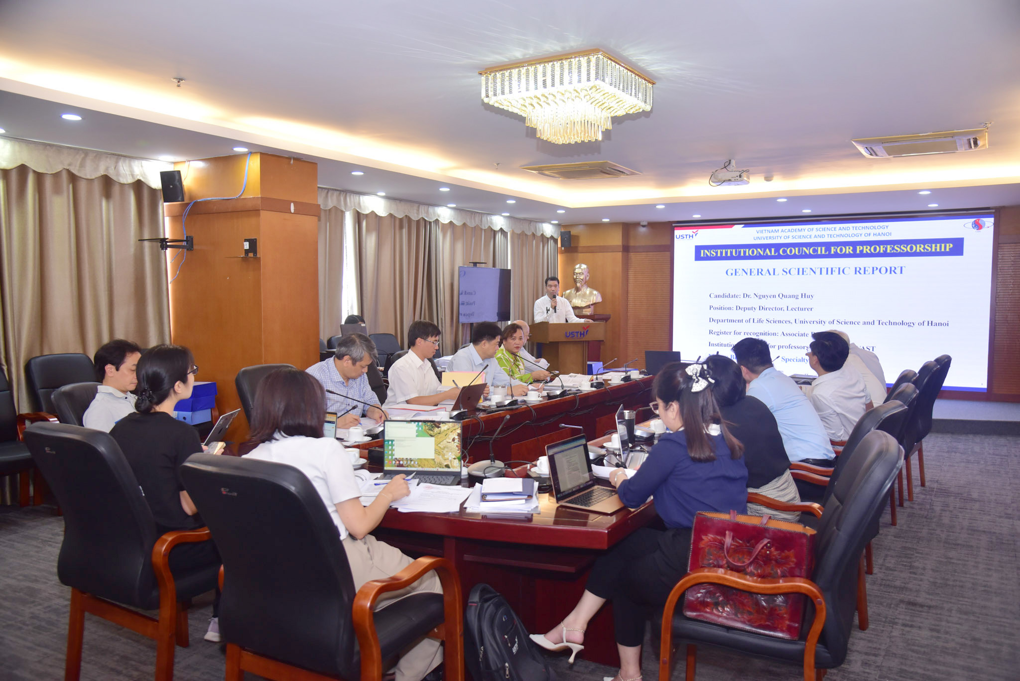 Đây là phiên làm việc chính thức nhằm thẩm định hồ sơ, đánh giá năng lực chuyên môn và trình độ ngoại ngữ của các ứng viên theo đúng quy định của Hội đồng Giáo sư Nhà nước. Hội đồng gồm 11 thành viên, do GS.TS. Chu Hoàng Hà – Phó Chủ tịch Viện Hàn lâm Khoa học và Công nghệ Việt Nam – làm Chủ tịch, cùng các nhà khoa học đến từ USTH và Viện Hàn lâm KH&CN Việt Nam.