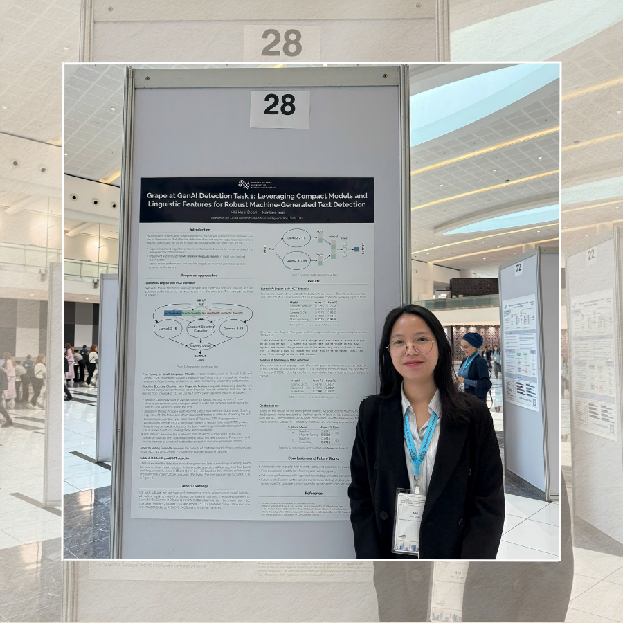 Từng có trải nghiệm thực tập quốc tế tại Pháp theo học bổng thực tập của USTH, Nhi hiểu giá trị của môi trường học thuật đa quốc gia. Sang bậc Thạc sĩ, cô tiếp tục có kỳ thực tập 3 tháng tại Đức. Vì vậy, hệ sinh thái hợp tác toàn cầu của MBZUAI – cho phép sinh viên tiếp tục nghiên cứu tại Mỹ, châu Âu, Singapore hay Nhật Bản – càng củng cố lựa chọn của cô, giúp cô không bị giới hạn trong một khu vực.