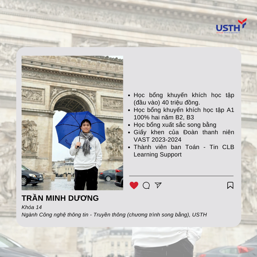 Trước khi đặt chân tới “đất nước hình lục lăng”, Trần Minh Dương đã sở hữu bảng thành tích “đáng nể” tại USTH với hàng loạt học bổng xuất sắc.