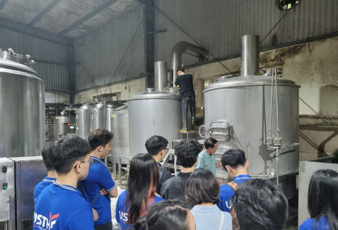 Vừa qua, sinh viên Khóa 12 ngành Khoa học và Công nghệ Thực phẩm (FST) – Trường Đại học Khoa học và Công nghệ Hà Nội (USTH) dưới sự hướng dẫn của TS Phạm Hoàng Nam đã có chuyến thực tập chuyên môn tại Nhà máy Bia FBT – một trong những đơn vị tiên phong trong lĩnh vực sản xuất bia thủ công (craft beer) tại Hà Nội. Đây là hoạt động nằm trong chuỗi chương trình đào tạo gắn kết thực tiễn của FST – USTH, nhằm tạo điều kiện để sinh viên tiếp cận trực tiếp với môi trường sản xuất thực phẩm và đồ uống chuyên nghiệp.