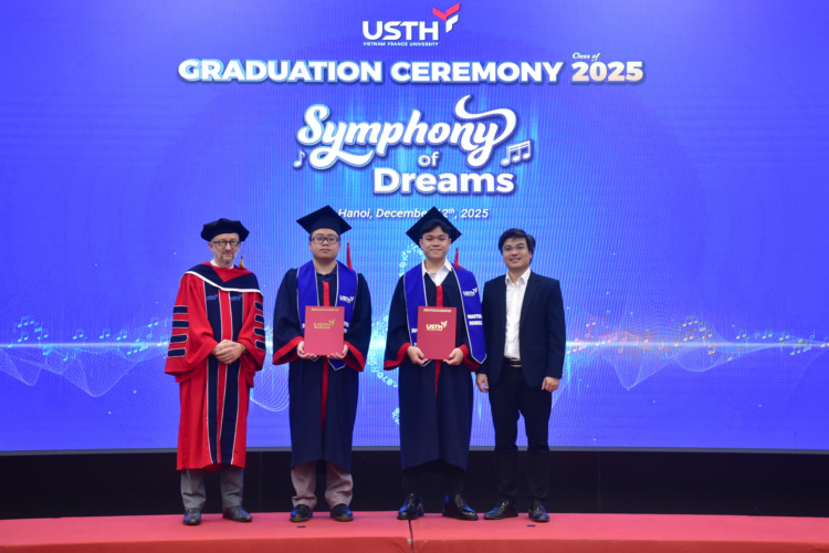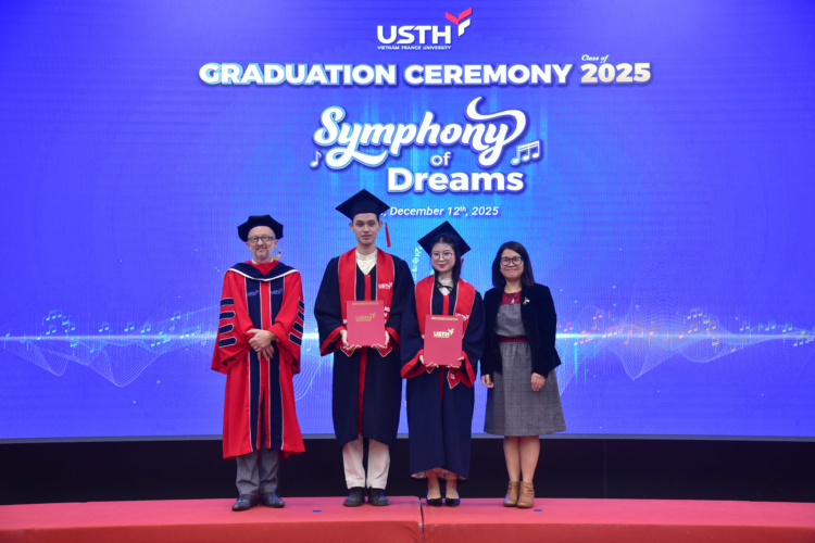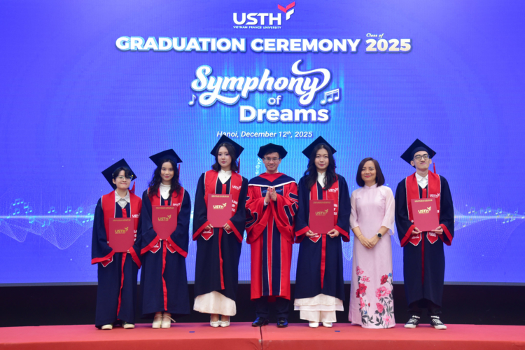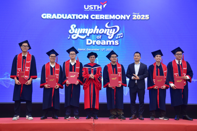 Ngày 12/12/2025, Trường Đại học Khoa học và Công nghệ Hà Nội (USTH) long trọng tổ chức Lễ Tốt nghiệp 2025 – Đợt 2 với chủ đề “Symphony of Dreams – Bản giao hưởng của những giấc mơ”, tiếp nối đợt 1 diễn ra vào tháng 8. Đây là khoảnh khắc đánh dấu sự trưởng thành của các tân cử nhân, thạc sĩ và tiến sĩ sau nhiều năm miệt mài học tập, nghiên cứu và chinh phục tri thức.