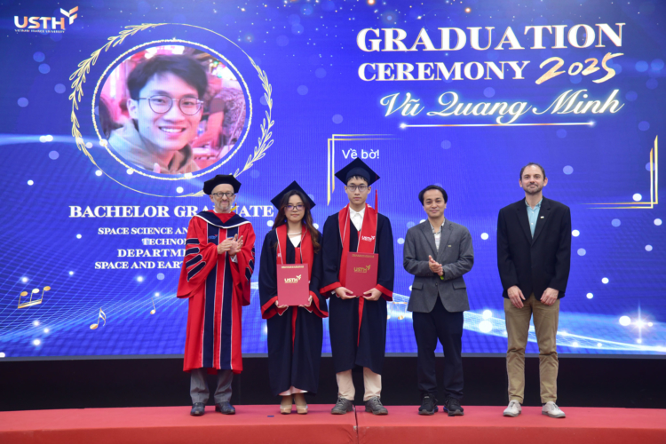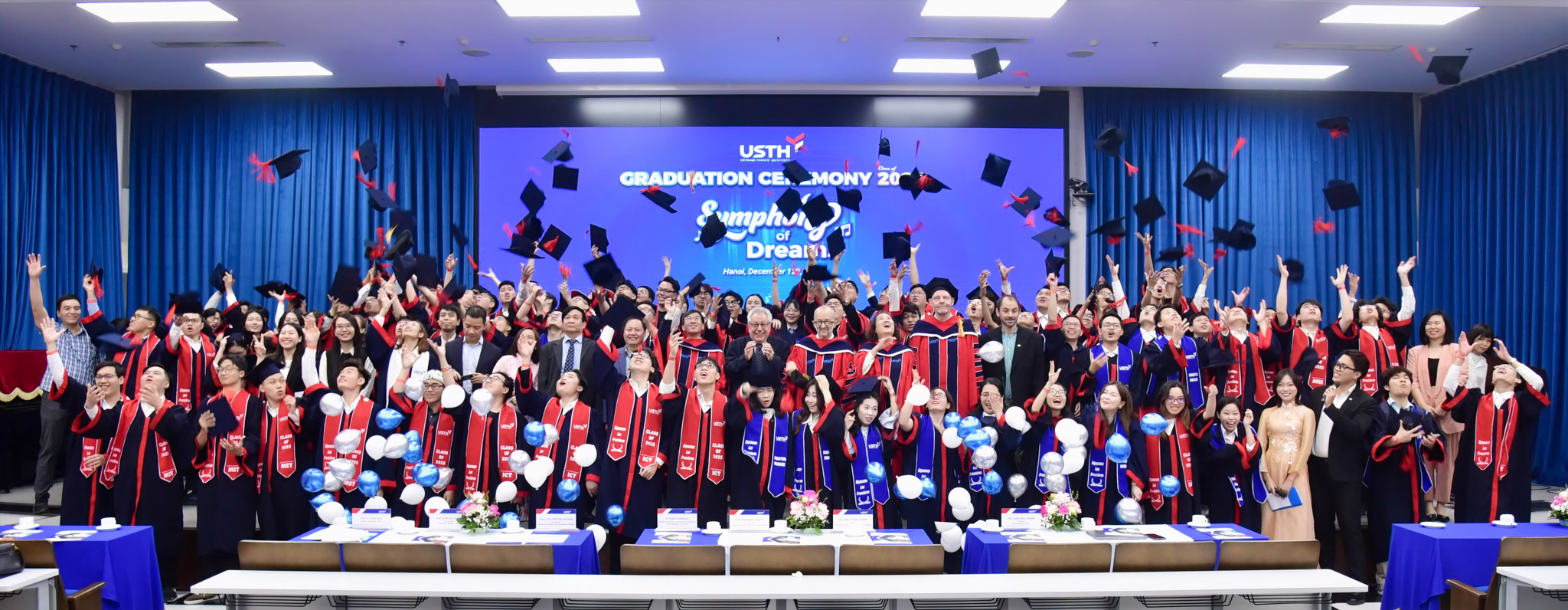 Xin chúc mừng các tân cử nhân, thạc sĩ và tiến sĩ USTH 2025. Chúc các em tiếp tục viết nên những giai điệu đẹp của hành trình tri thức, mang tinh thần USTH vươn ra biển lớn và tỏa sáng trong tương lai.