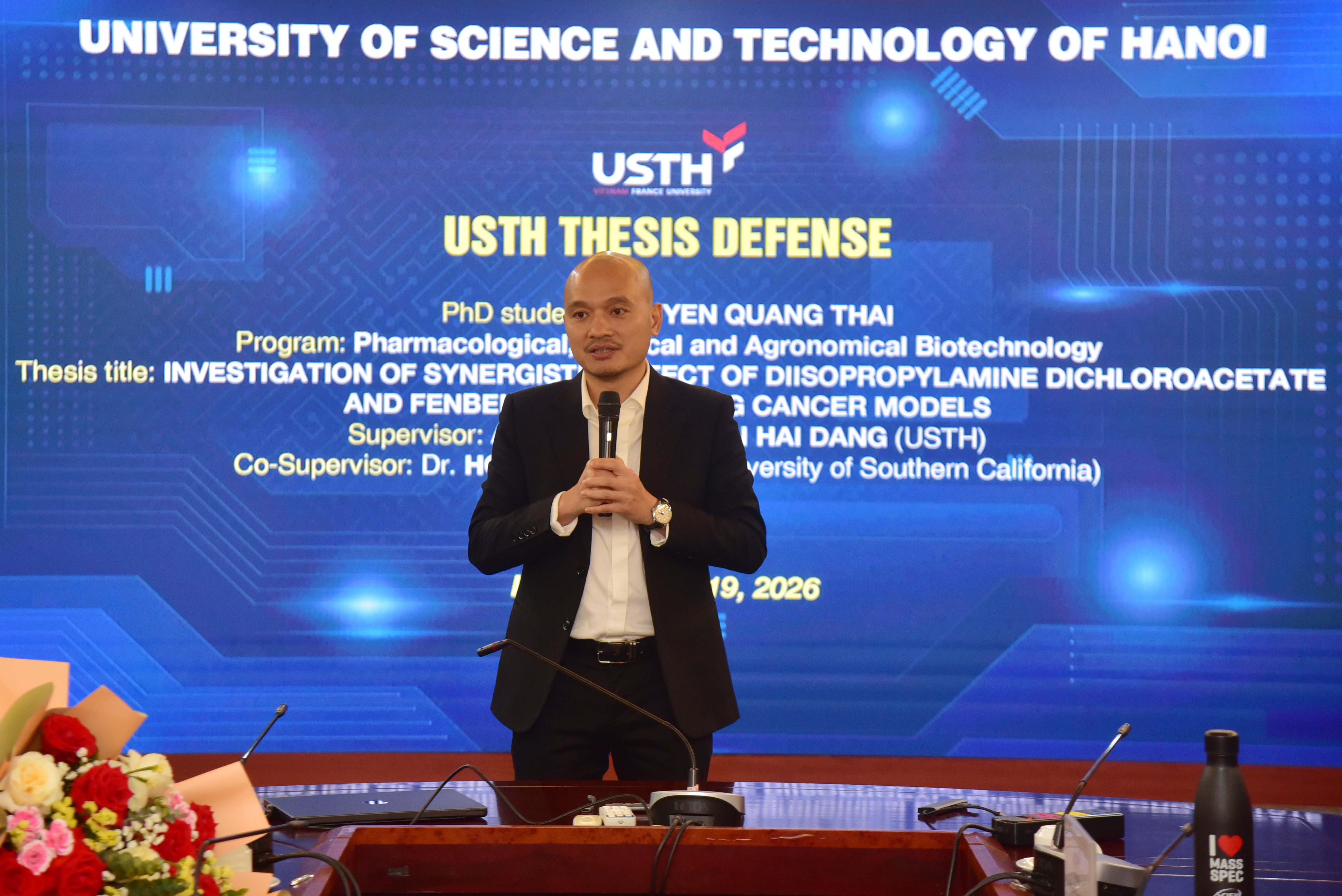Anh cũng không quên gửi lời cảm ơn chân thành đến các thầy cô tại USTH, những người đã hỗ trợ, đồng hành và tạo điều kiện cho một “doanh nhân đi học” như anh có được một môi trường nghiên cứu chuyên nghiệp. Anh khoe về cái “Joint Lab” (Phòng thí nghiệm chung) giữa Dược Thái Minh và USTH như một niềm tự hào chung, nơi mà anh mong rằng những phát minh thuốc mới của Việt Nam sẽ bắt đầu từ đó.
