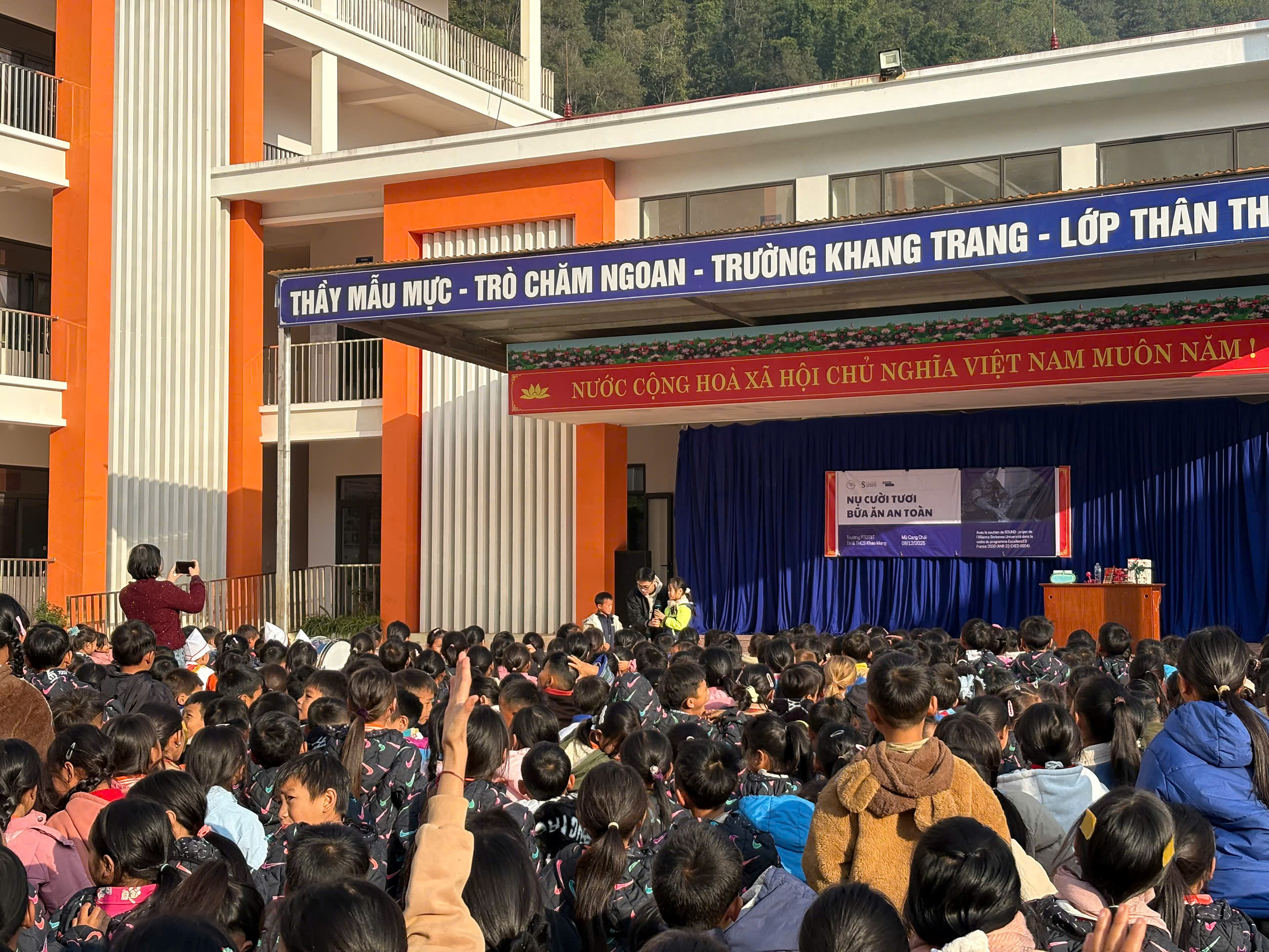 Sau khi trao đổi và hỗ trợ bởi địa phương, Hải được kết nối đến Trường Dân tộc Nội trú Khao Mang, một ngôi trường liên cấp tiểu học và THCS tại Mù Cang Chải với gần 800 em học sinh. Đây là quy mô vượt xa mong đợi ban đầu của Hải (dự kiến tiếp cận chỉ khoảng 200 – 300 em).