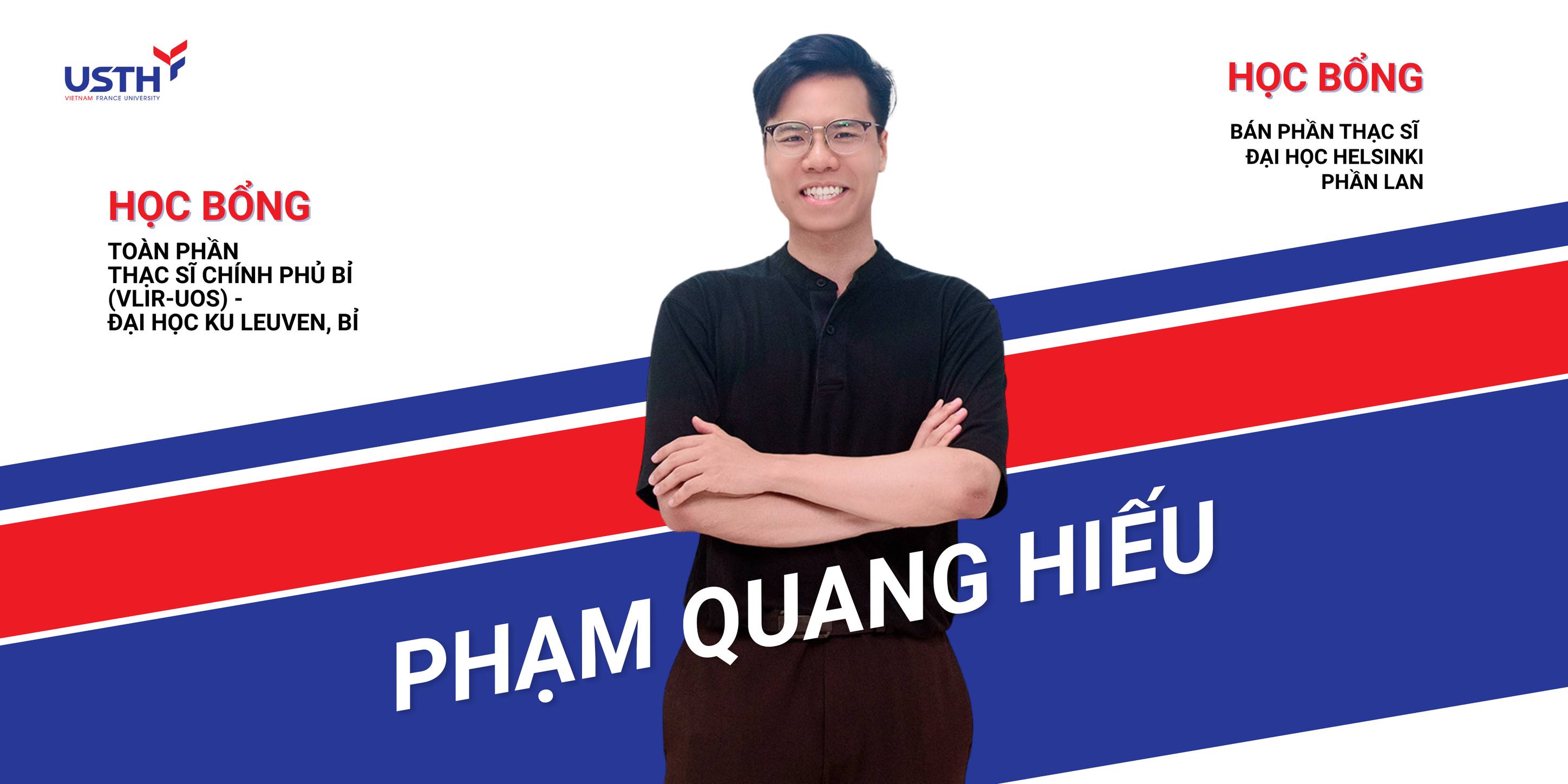 Phạm Quang Hiếu (sinh năm 2000) là cựu sinh viên khóa 9, ngành Khoa học và Công nghệ thực phẩm, Trường Đại học Khoa học và Công nghệ Hà Nội (USTH). Hiện tại, anh đang làm việc tại Fazer – một trong những tập đoàn thực phẩm lớn và uy tín tại Phần Lan.