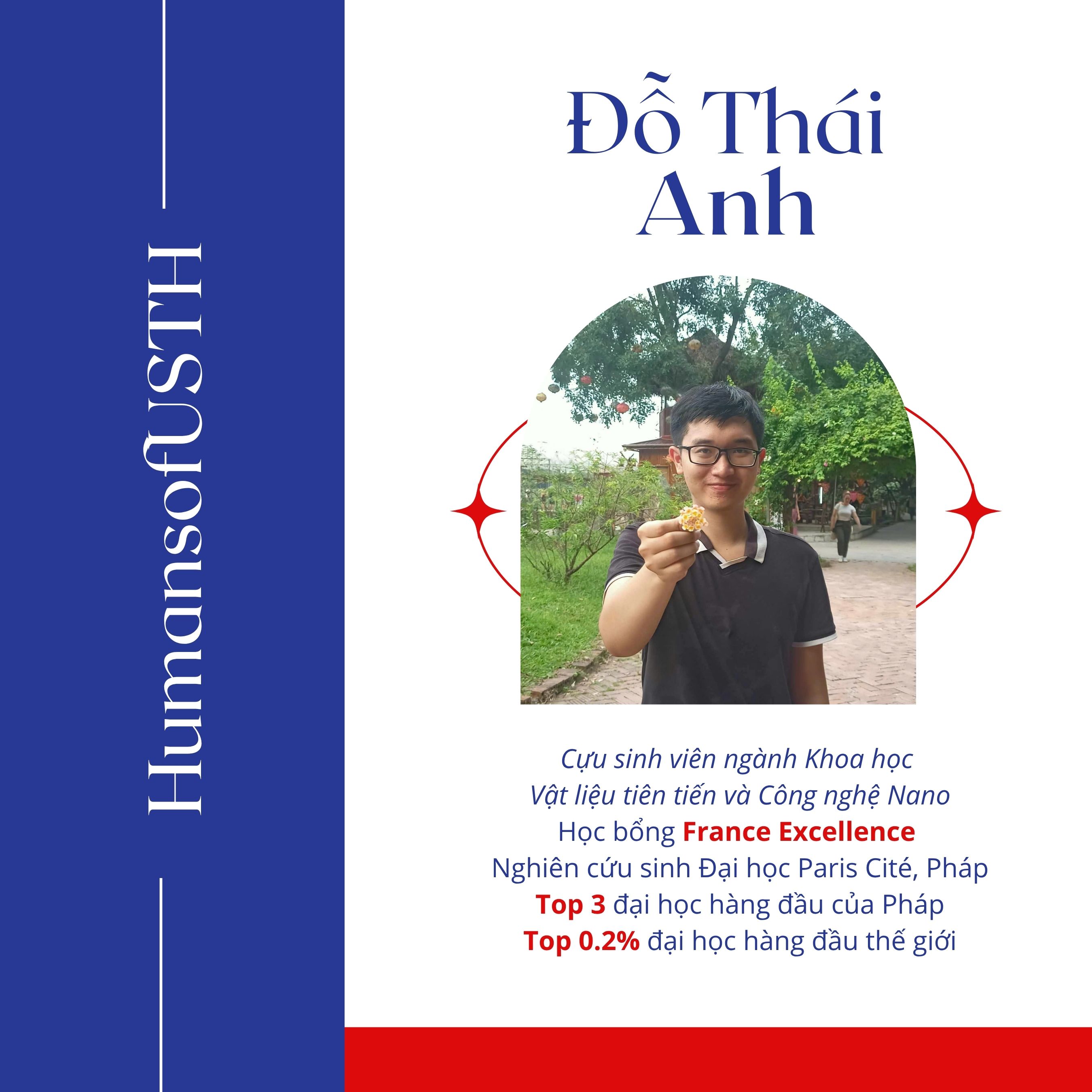 Sinh ra và lớn lên từ vùng đất hiếu học, Đỗ Thái Anh – cựu sinh viên ngành Khoa học vật liệu tiên tiến và Công nghệ Nano nuôi dưỡng ước mơ được nối tiếp truyền thống của gia đình và các bậc hiền tài của quê hương. Thái Anh đã giành được học bổng danh giá của Đại sứ quán Pháp để theo học chương trình tiến sĩ tại Đại học Paris Cité, ngôi trường thuộc top 0.2% các trường đại học hàng đầu trên thế giới.