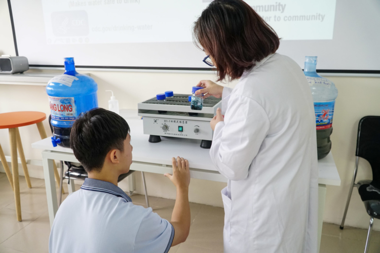 – Thực hành đo kiểm và phân tích nguồn nước, tìm hiểu quy trình lọc nước sinh hoạt qua các bước lọc thô, lọc tinh, lọc vật lý và hóa học – trải nghiệm khoa học bằng chính đôi tay và sự quan sát của mình.