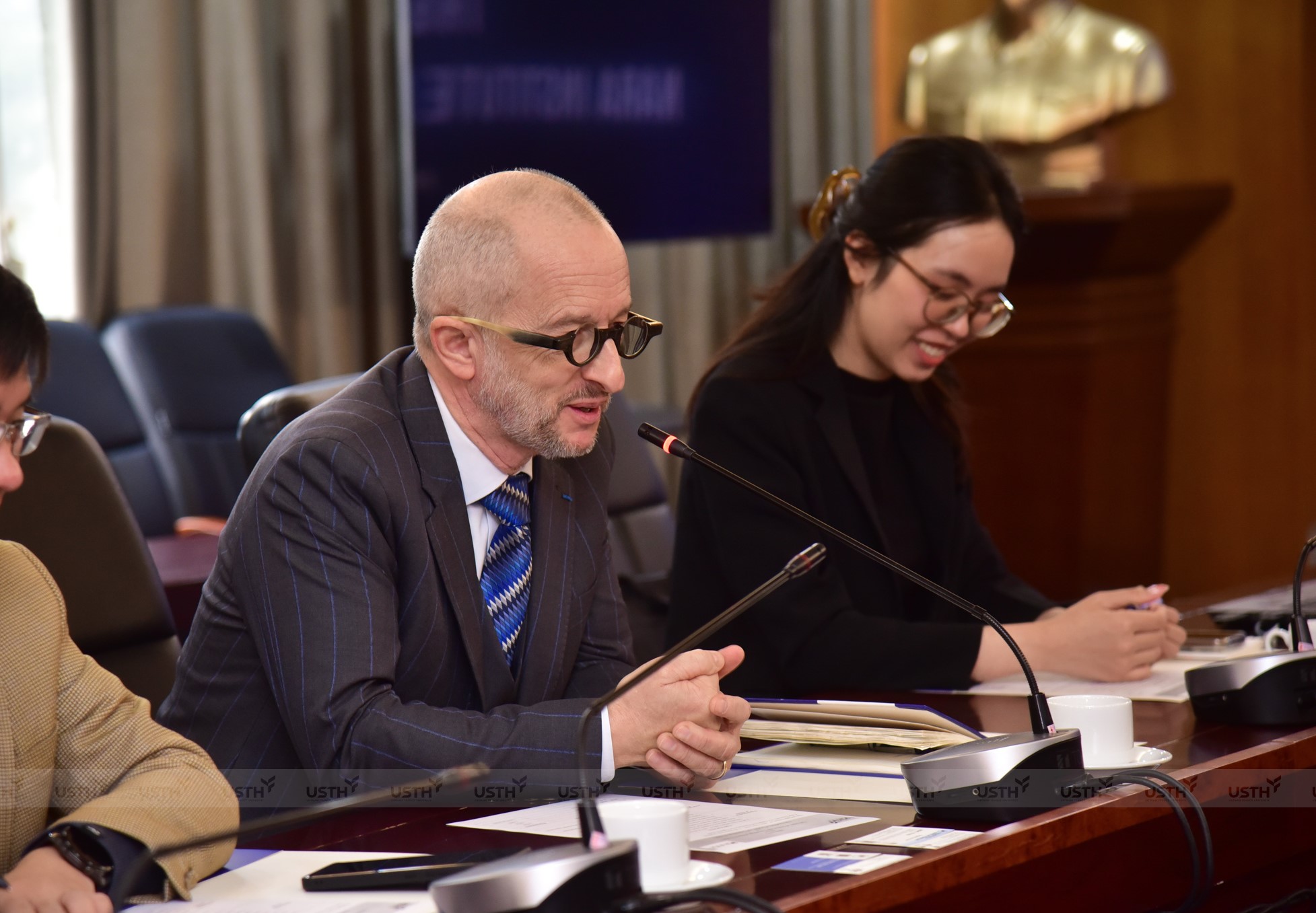 GS.TS. Jean-Marc Lavest nhấn mạnh vai trò đối tác chiến lược của Nhật Bản đối với Việt Nam, đồng thời bày tỏ kỳ vọng mối quan hệ hợp tác giữa USTH và NAIST sẽ tiếp tục được củng cố và mở rộng, qua đó góp phần nâng cao chất lượng đào tạo, nghiên cứu khoa học và năng lực hội nhập quốc tế của Nhà trường.