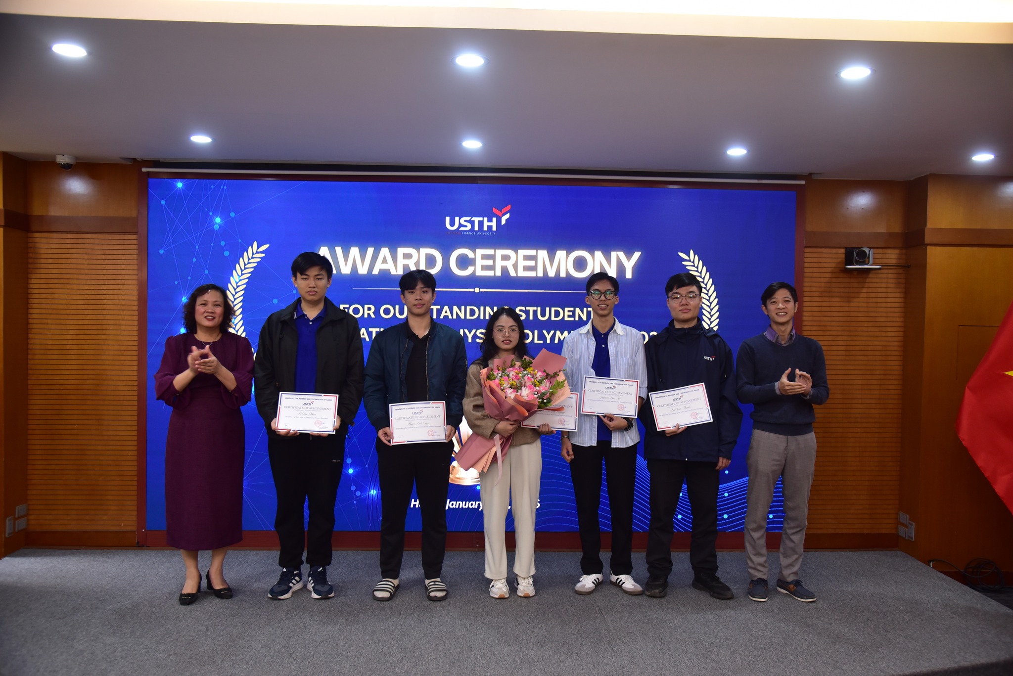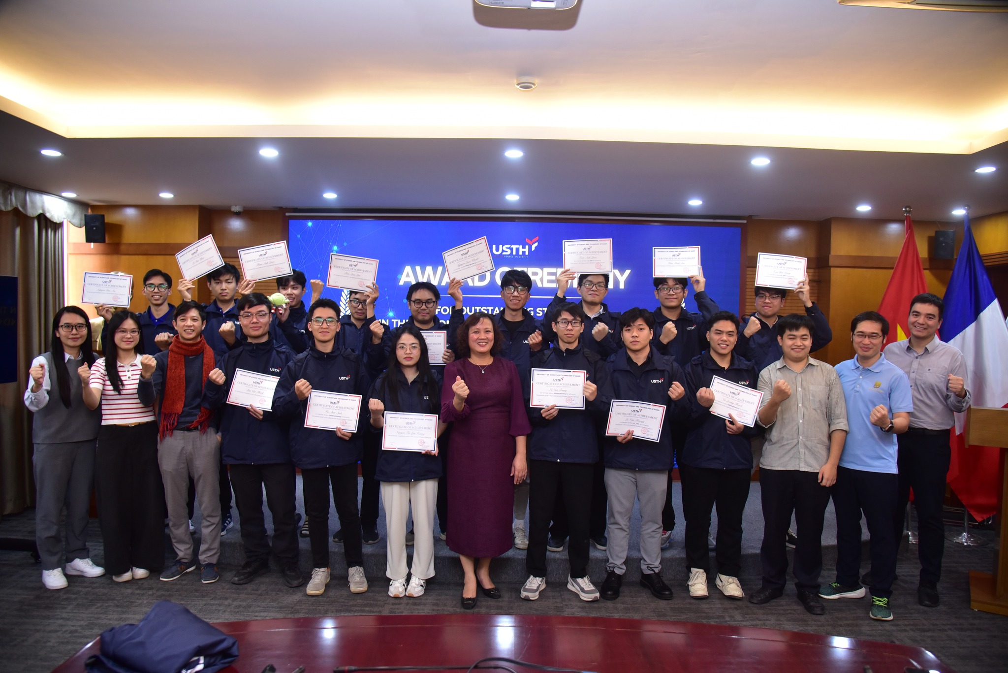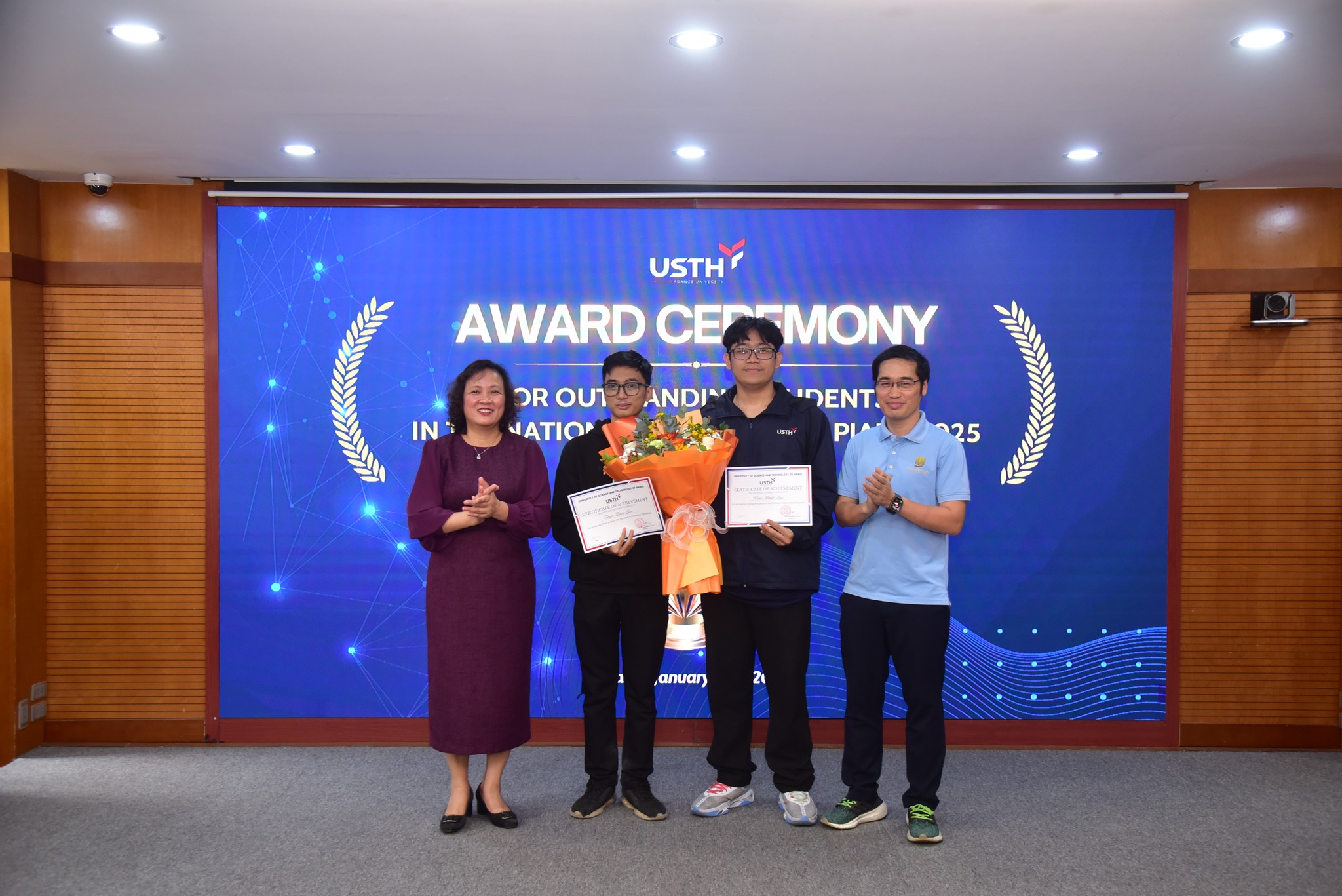 Tại buổi lễ, Nhà trường đã tuyên dương các sinh viên đạt 01 Giải Ba và 01 Giải Khuyến khích Olympic Tin học; 01 Giải Ba và 04 Giải Khuyến khích Olympic Vật lý; 04 Giải Ba và 04 Giải Khuyến khích tại Cuộc thi Sinh viên An ninh mạng, qua đó tiếp tục bổ sung thêm thành tích học thuật ấn tượng của USTH trong năm 2025.