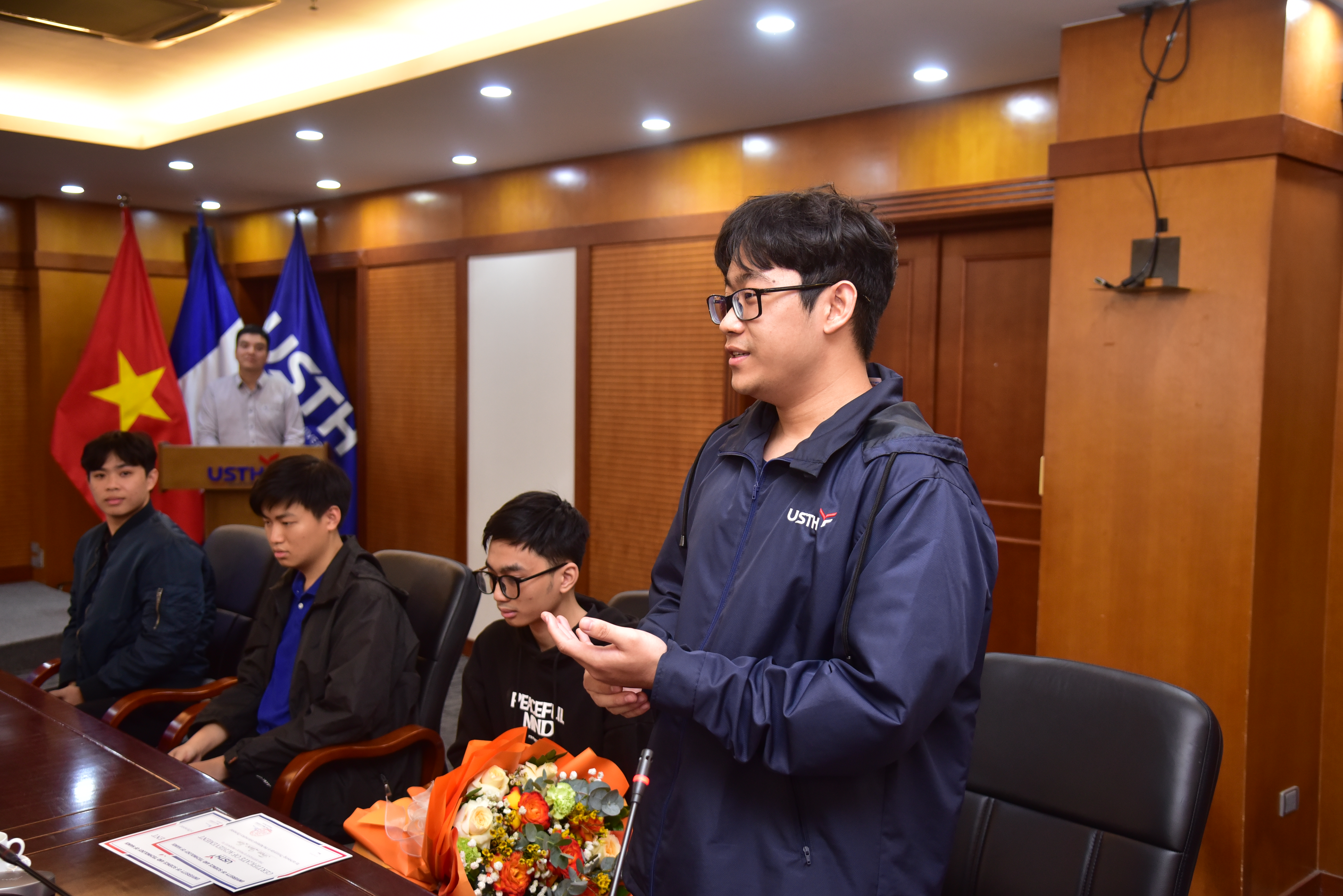 Tại buổi lễ, các sinh viên đạt giải cũng bày tỏ sự trân trọng và biết ơn đối với sự đồng hành của các thầy cô và Nhà trường. Sinh viên cho rằng, sự quan tâm, hỗ trợ và định hướng kịp thời từ giảng viên cùng môi trường học tập nghiêm túc tại USTH chính là nền tảng quan trọng giúp các em vững tin tham gia các sân chơi học thuật lớn. Quá trình ôn luyện và thi đấu không chỉ giúp sinh viên nâng cao kiến thức chuyên môn, mà còn rèn luyện bản lĩnh, tinh thần làm việc nhóm và khả năng vượt qua áp lực – những hành trang quan trọng cho chặng đường học tập và nghề nghiệp sau này.
